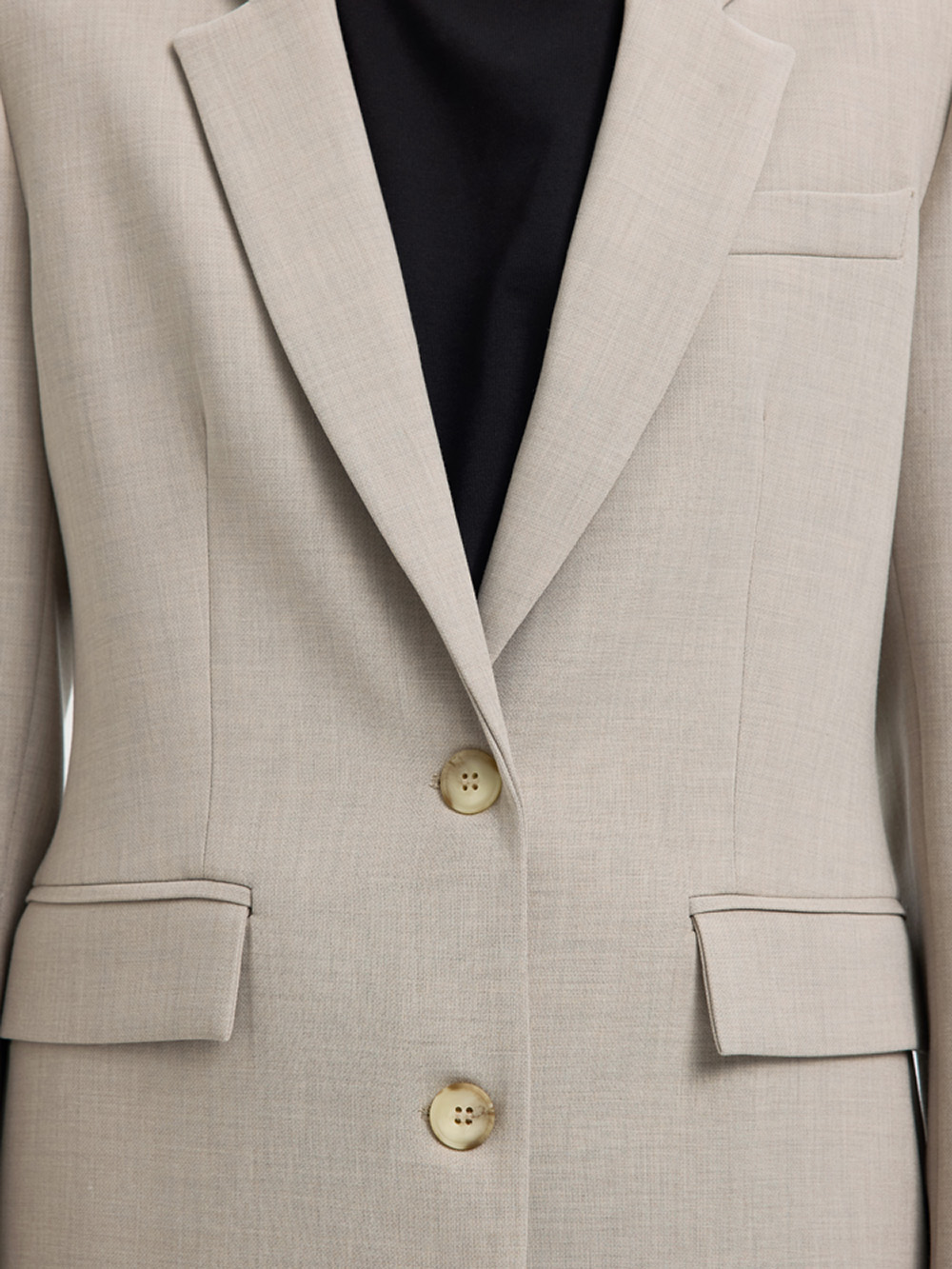 Elegant og tidløs blazer med enkeltspent front og innskåret jakkeslag. De innfelte frontlommene med klaff gir et raffinert preg, og den regulære passformen gjør den lett å style til både jobb og hverdagslige anledninger. En klassiker du vil bruke år etter år.