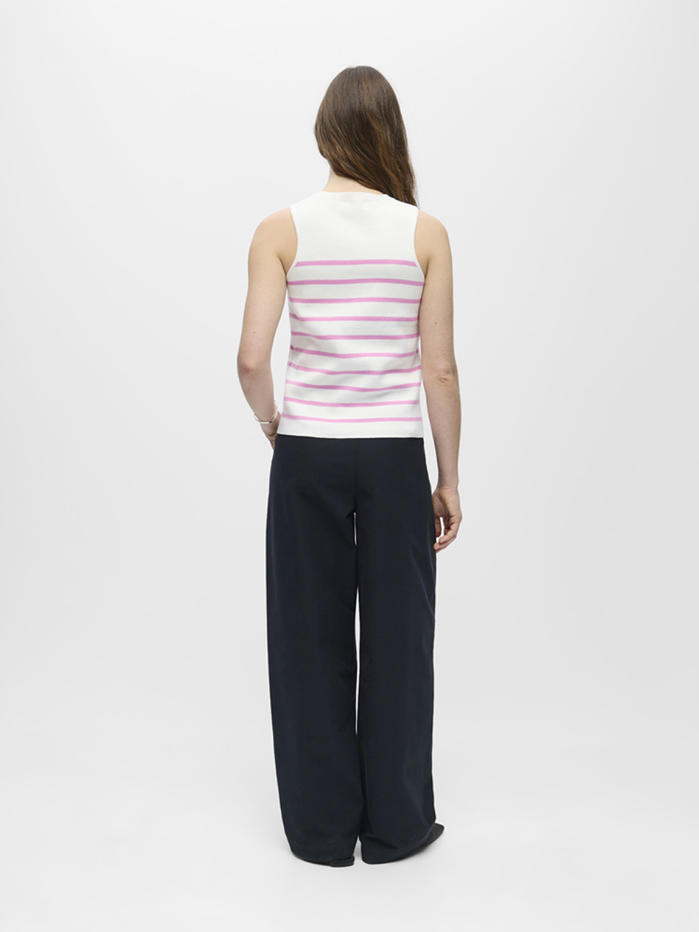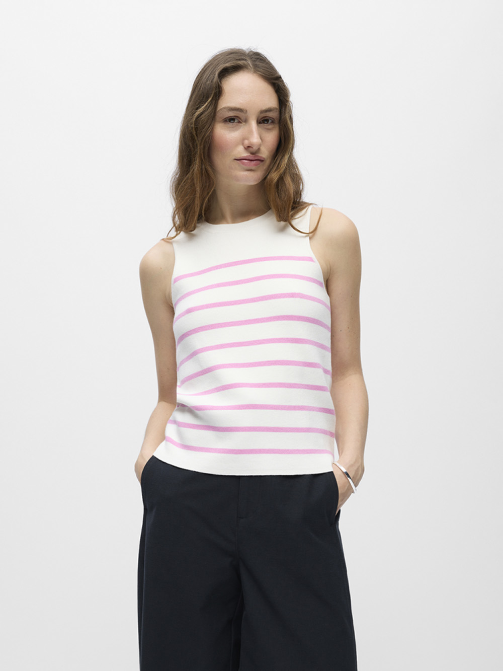 En tidløs og sommerlig strikketopp fra OBJECT i klassisk stripemønster. REYNARD S/L KNIT TANK har en flatterende rund hals og ermeløst design, perfekt for varme dager eller som et lag-på-lag plagg. Den ribbestrikkede kvaliteten gir en behagelig passform med en feminin og avslappet silhuett. Et enkelt, men stilfullt baseplagg som løfter enhver garderobe.