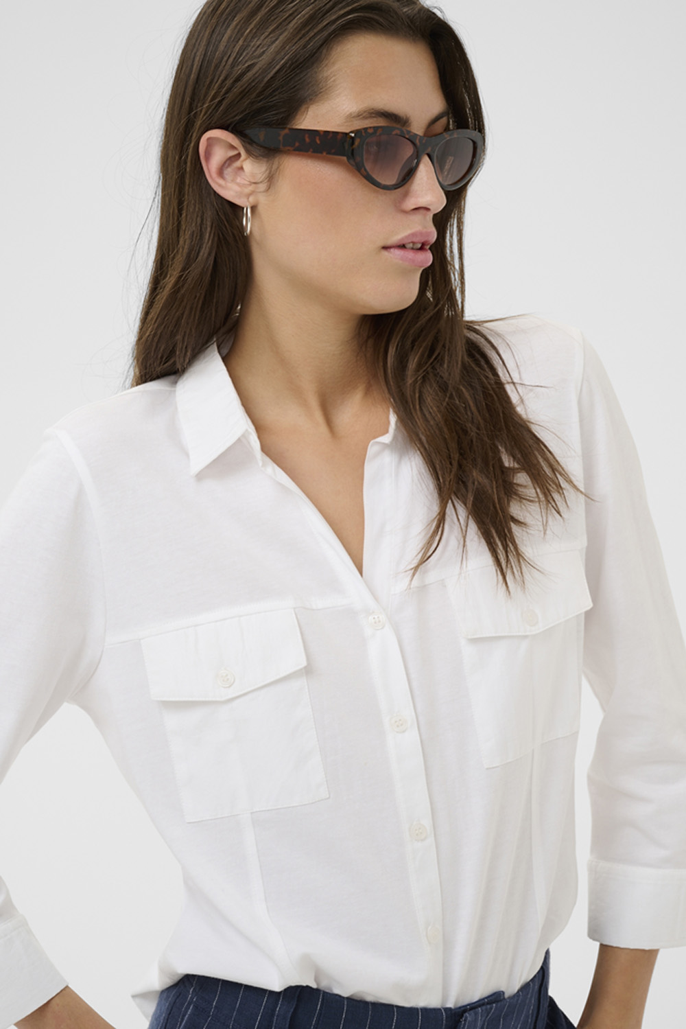 Skjorte med lett innsvingt passform, klassisk krage og knappelukking foran. Trekvart ermer og brystlommer med klaff gir et tidløst, stilrent uttrykk – perfekt til både jobb og hverdags.