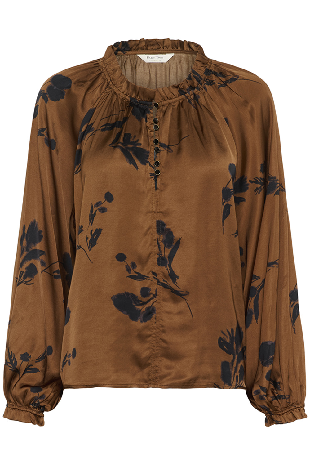 Venessa Pw Blouse fra Part Two er en myk og elegant bluse som løfter antrekket ditt. Blusen har blomsterprint, rund hals med volangkant og dekorative knapper foran. Perfekt for både hverdagsluksus og små festlige øyeblikk.