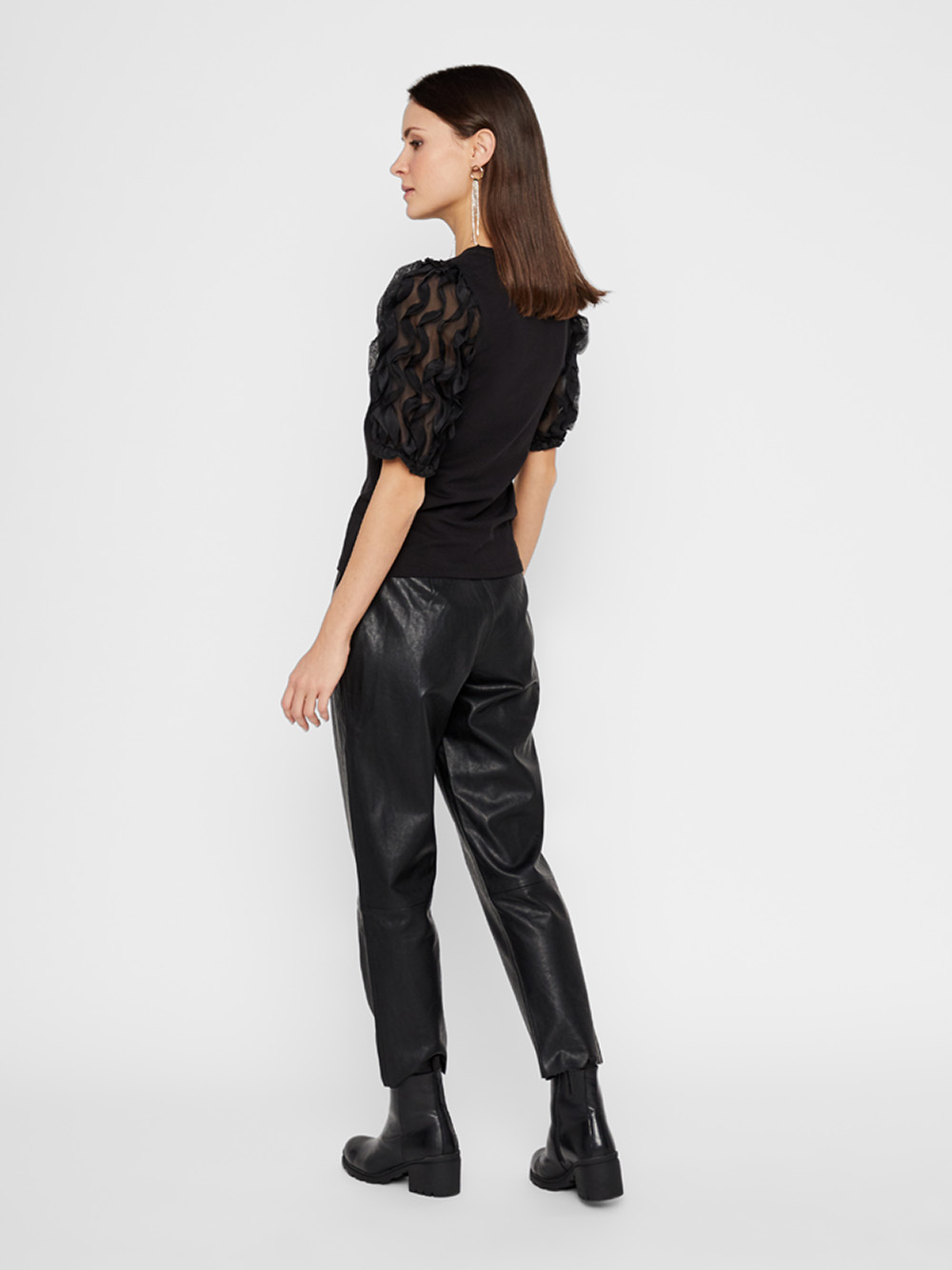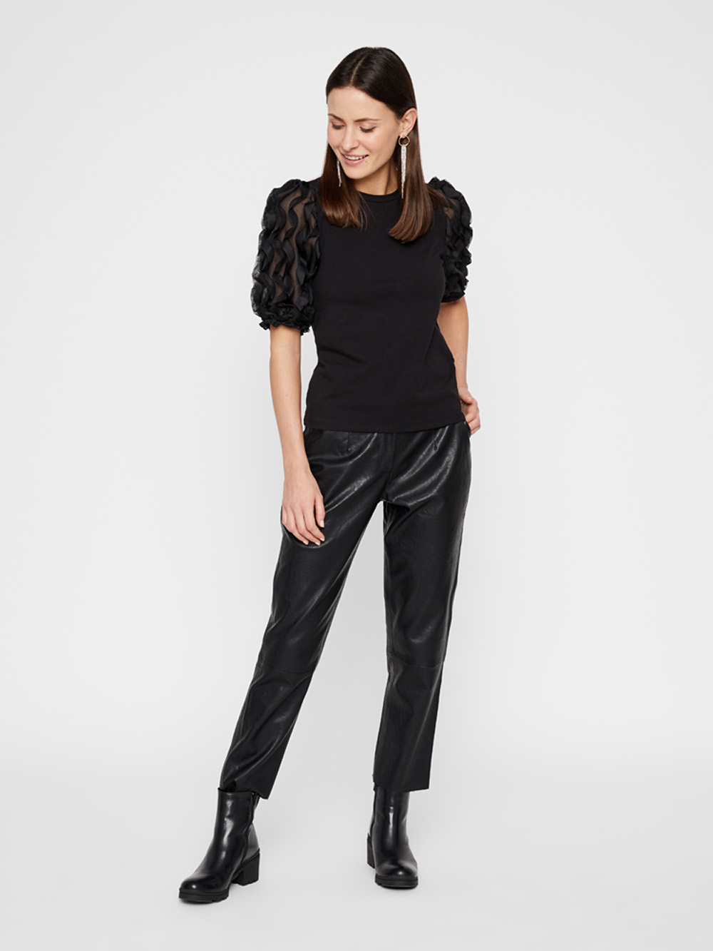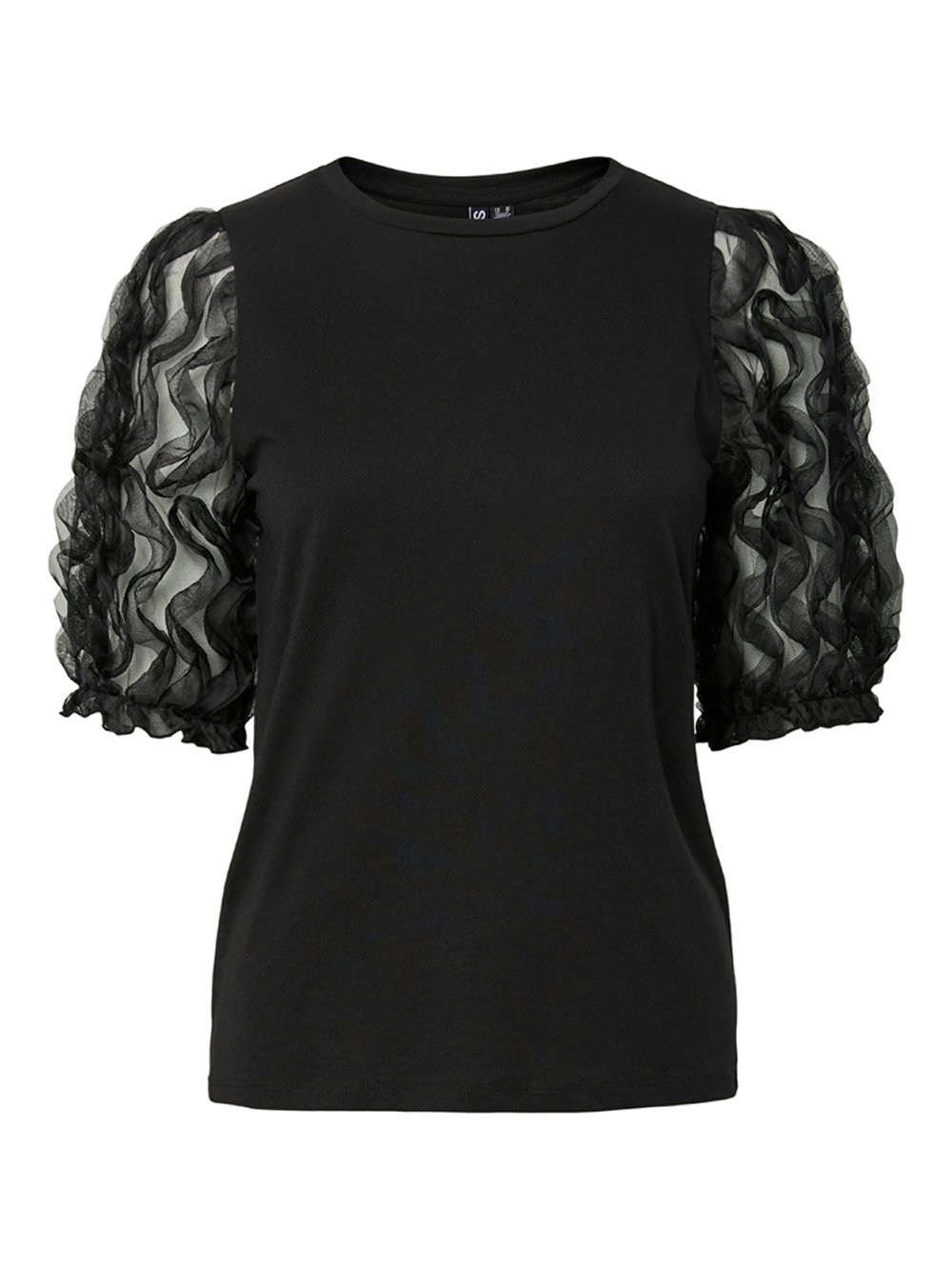 Sadalena 2/4 Top fra Pieces. Elegant og feminin topp med nydelige puff-ermer i transparent stoff. De bølgete detaljene gir et lekkert spill, perfekt til både jeans og dressbukse. En topp som enkelt løfter antrekket- uansett anledning!