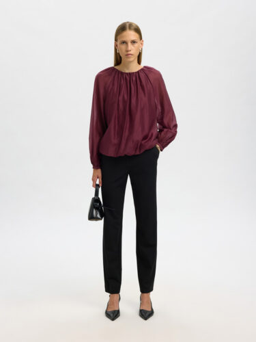 Iris Ls Top fra Selected Femme. Lett og feminin topp med rund hals og fine leggdetaljer. Den glansfulle lyocellkvaliteten gir et elegant uttrykk, mens den avslappede passformen sørger for en behagelig følelse gjennom dagen. Chic, enkel og perfekt til både jeans og dressbukse.
