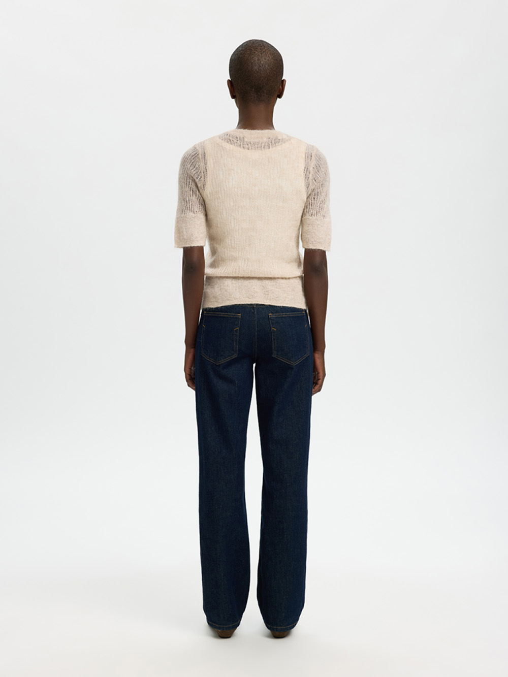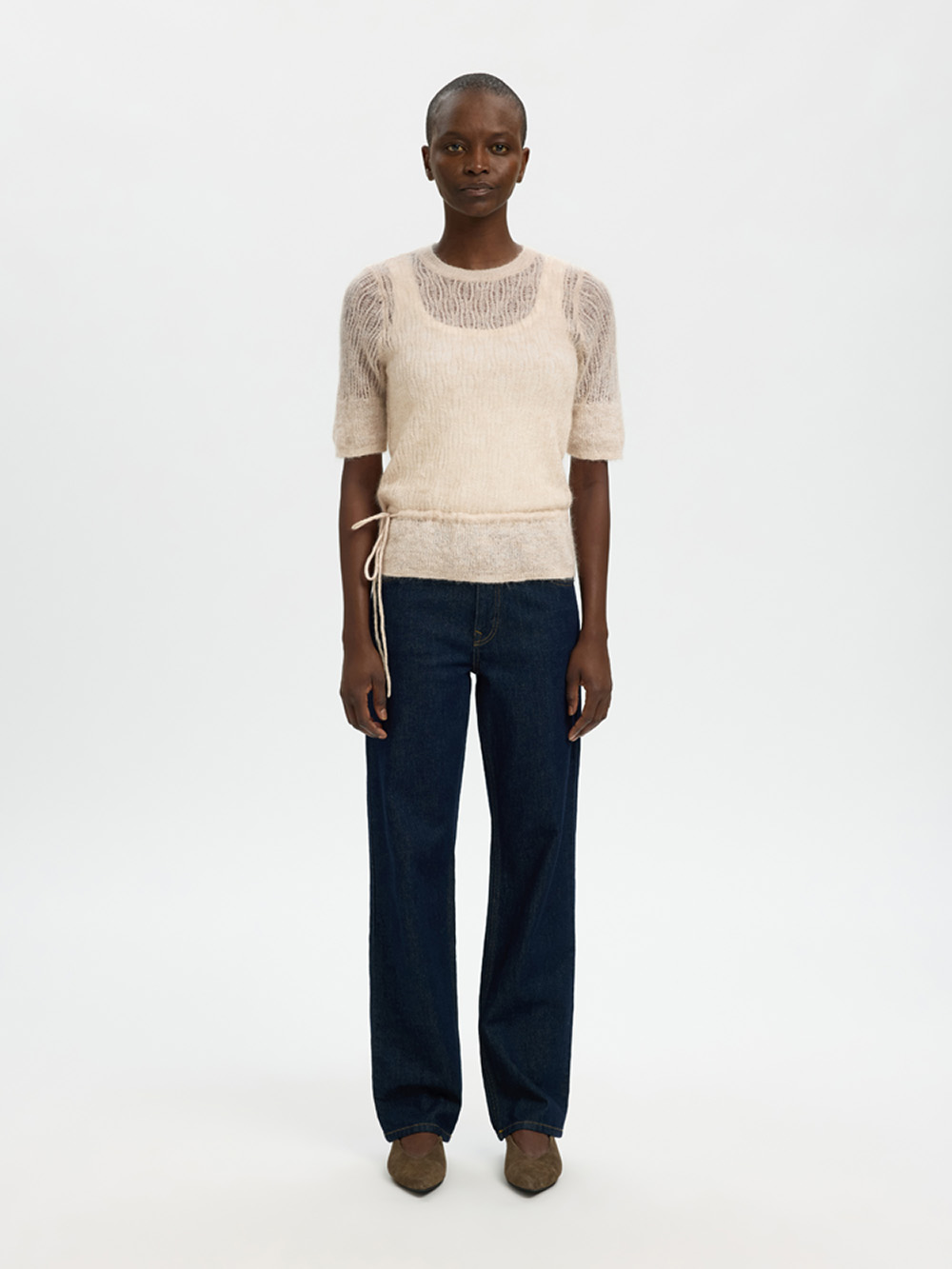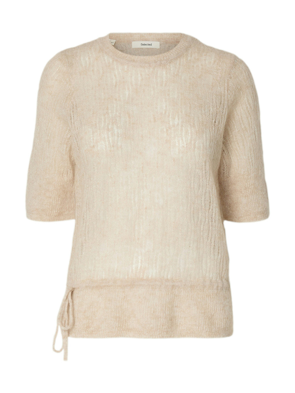 En feminin strikketopp med rund hals og halvlange ermer. Snøring i midjen gir en flatterende silhuett, mens ribbekanter og klassisk passform sørger for et tidløst uttrykk. Perfekt til både hverdags og mer pyntede anledninger – enkel, myk og elegant.
