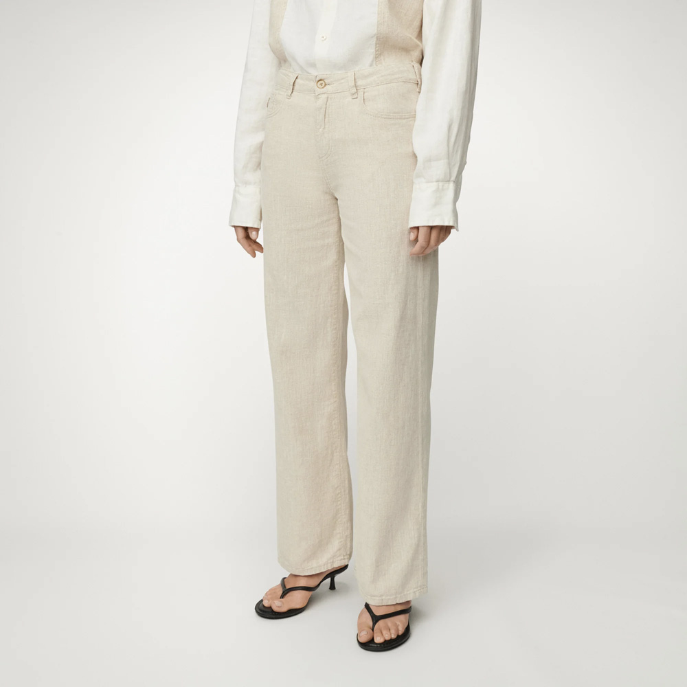 En sommerfavoritt i lett lin med høyt liv og vide ben. Culotten sitter tettere over hoftene og faller løst og ledig nedover beina, og gir en komfortabel og elegant silhuett – perfekt med sandaler eller lette topper.