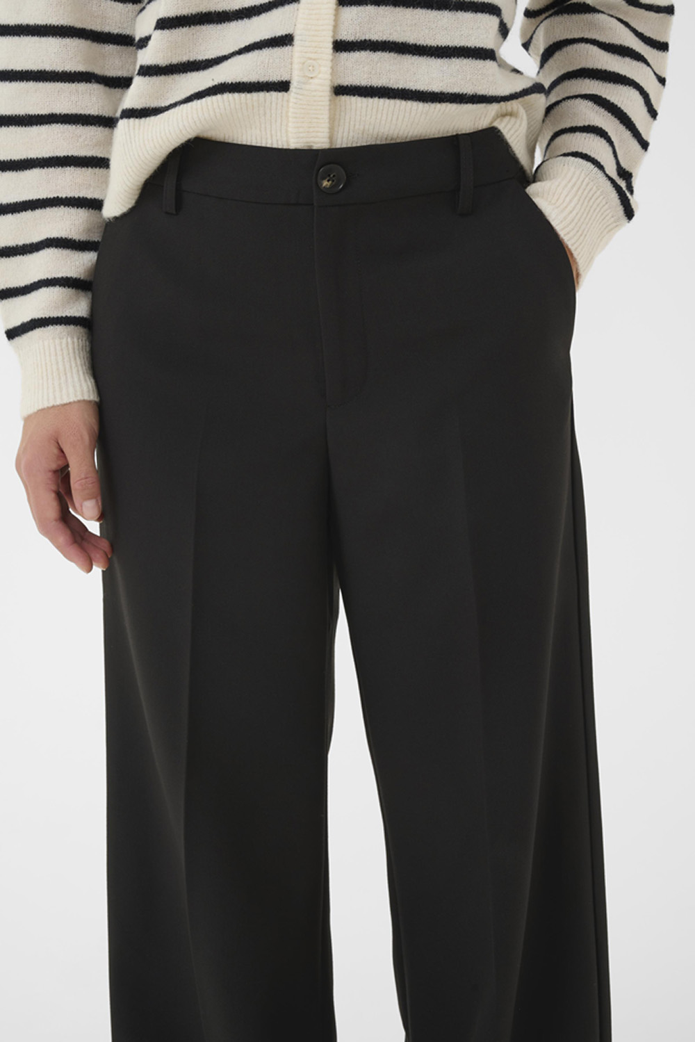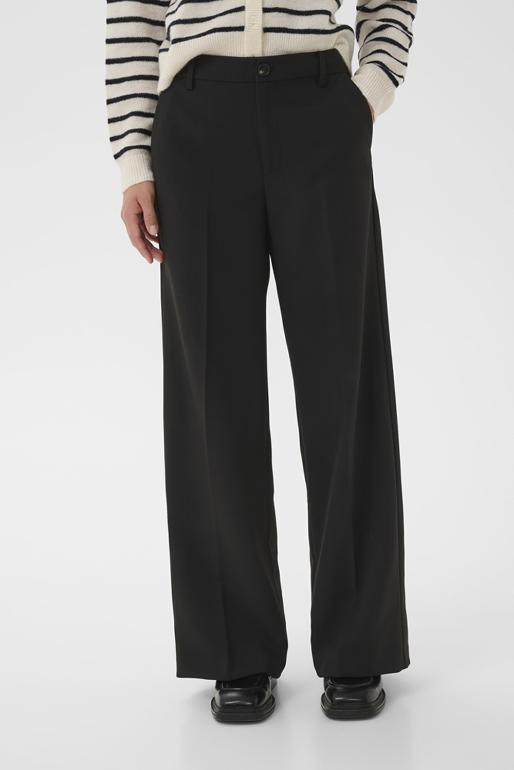 Ninnesa Pw Pant fra Part Two. Stilren bukse med tidløst design. Buksen har vide ben med pressede folder foran og en tidløs passform med fast linning og beltehemper. Perfekte for både jobb og avslappede dager, med enkel stylingmulighet.
