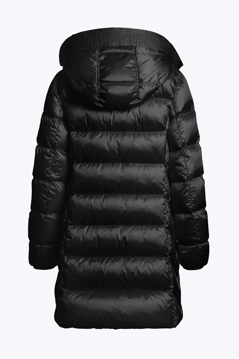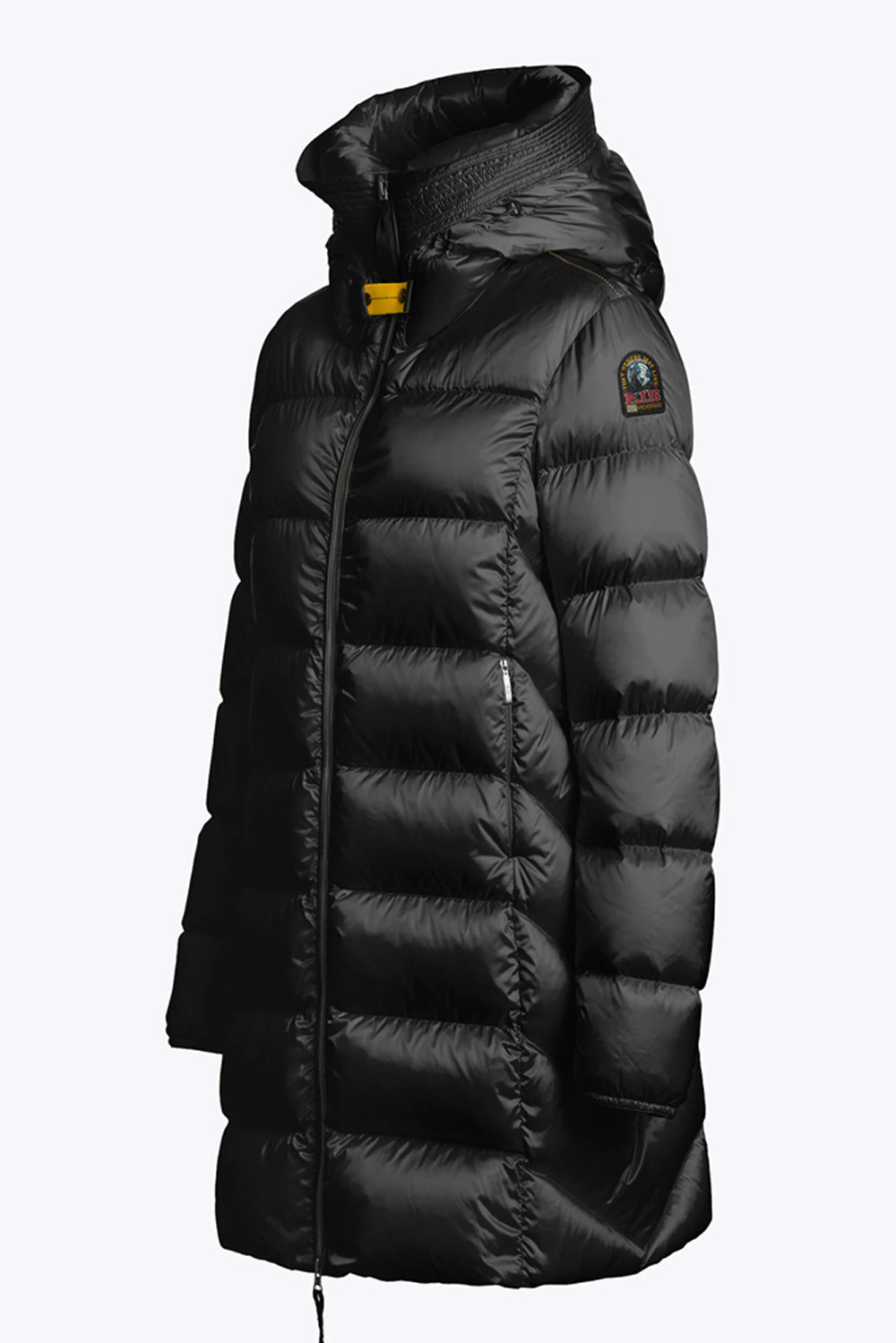 Marion er en lang, quiltet dunjakke med hette fra Parajumpers. Den er vannavvisende, har justerbar snøring i hetten og toveis glidelås for komfort og bevegelse. Underarmsventilasjon og lycra-kantede mansjetter gir en funksjonell finish. En elegant og varm jakke som konbinerer luksus og praktisk design- perfekt til nordisk vinter.