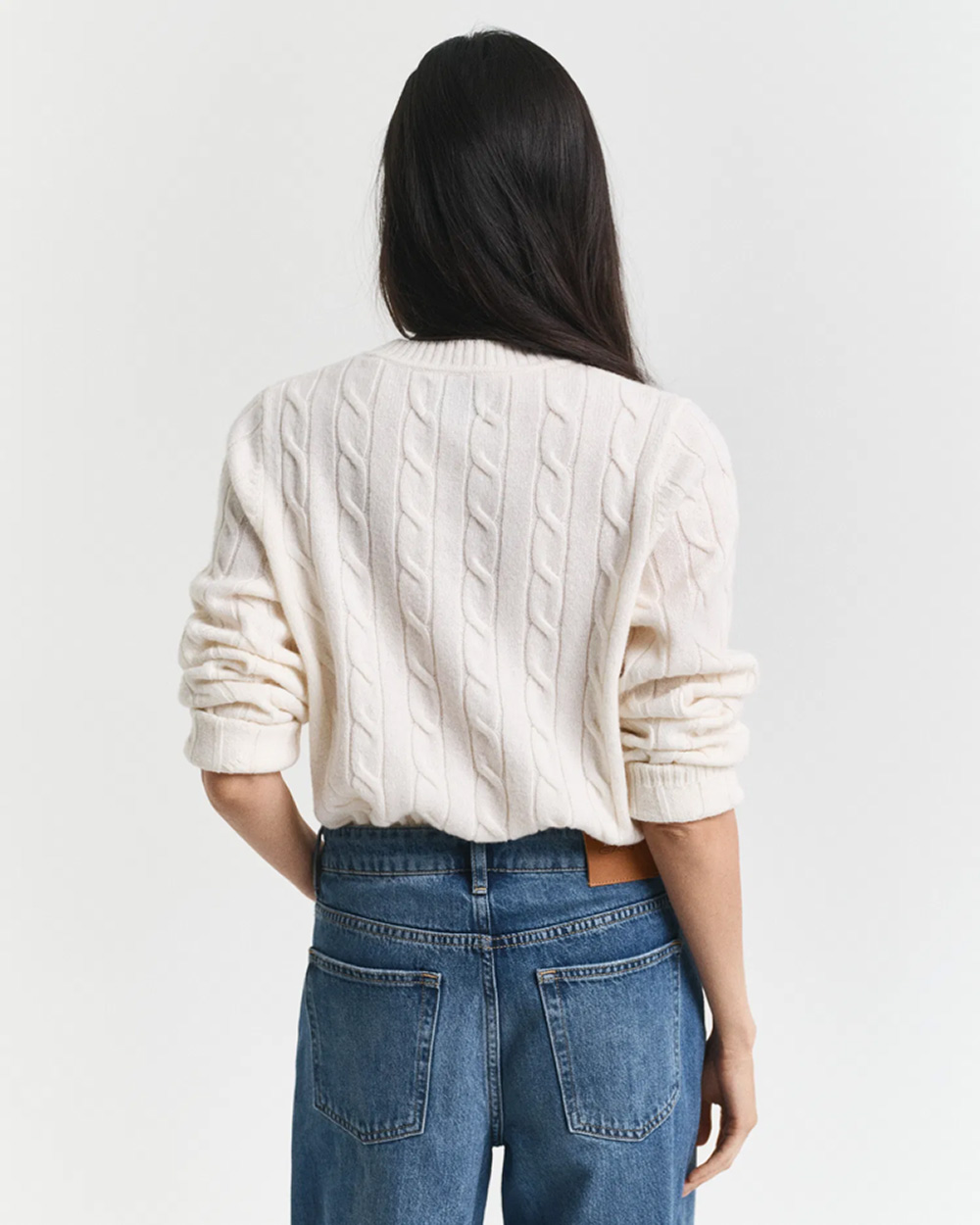 Lambswool Cable C-Neck fra Gant. En tidløs kabelstrikket genser i myk lammeull. Den lune ullkvaliteten gir varme og komfort, mens det klassiske mønsteret gjør den til et stilsikkert valg sesong etter sesong. Perfekt både til hverdags og til mer pyntede anledninger.