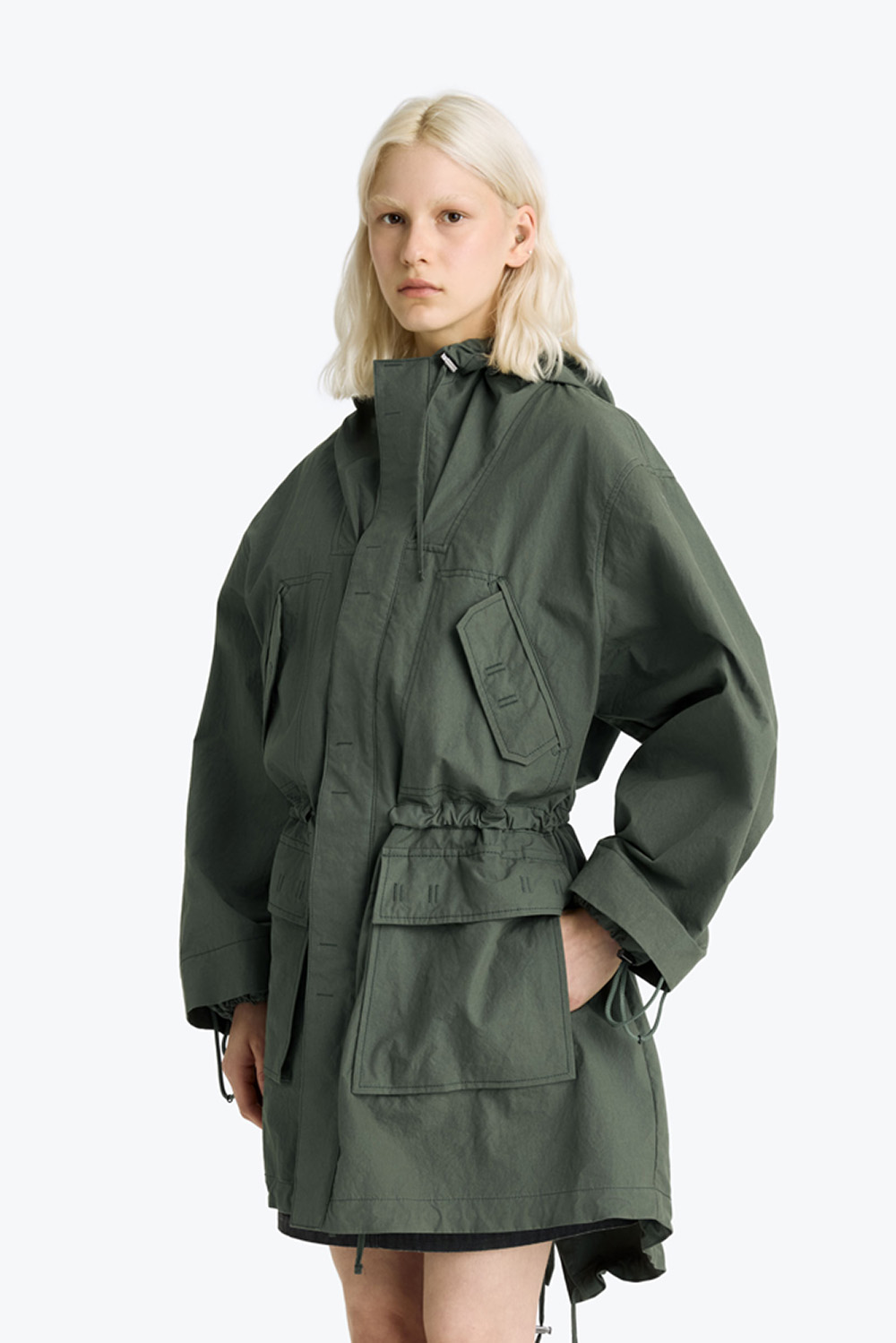Tøff og tidløs parkas i tettsydd bomull med vannavvisende behandling, inspirert av militær stil. Jakken har toveis glidelås skjult bak stormklaff, justerbar hette, midje, nederkant og mansjetter for optimal passform. Fire romslige frontlommer og splitt bak gir et funksjonelt uttrykk, mens Parajumpers-patchen på ermet gir et eksklusivt signaturpreg. En stilren og praktisk favoritt til overgangssesongen.