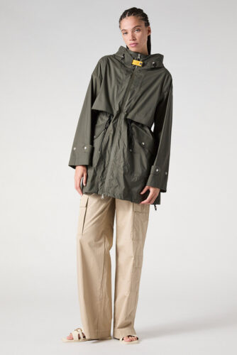 Mikuni Rain Jacket fra Parajumpers er en allsidig regnfrakk med rett passform og snøring i midjen. Jakken har trelags laminert stoff, teipede glidelås og sømmer, og er helt vanntett. En pålitelig følgesvenn for regnværsdager!