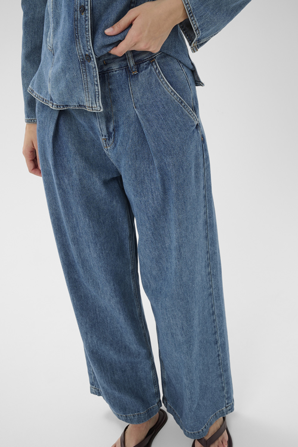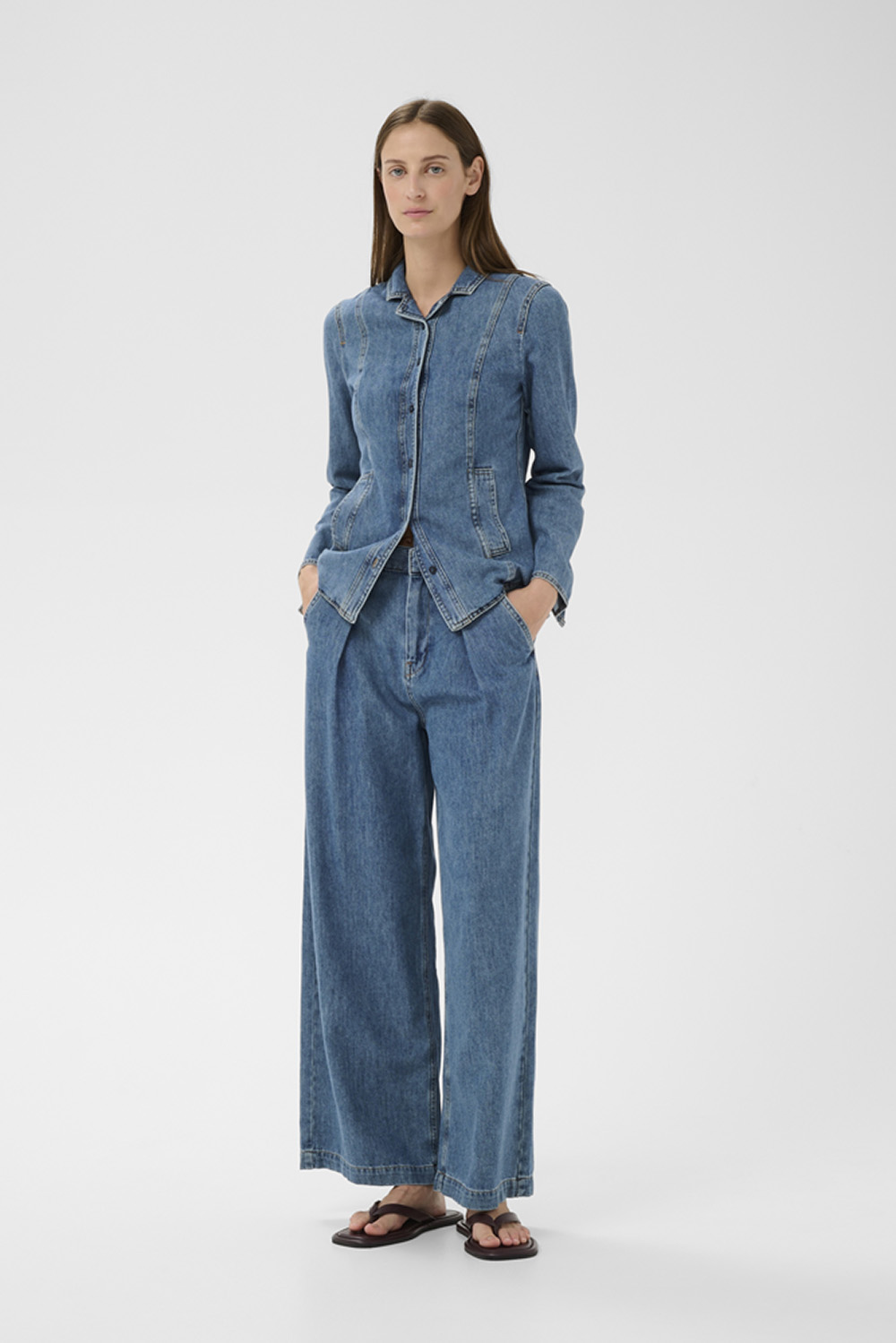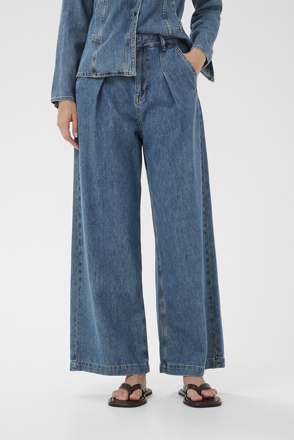 Dophina IW Pants fra InWear er jeans med høy midje og vide ben som skaper en elegant, rett silhuett. Med legg foran, klassisk linning og beltehemper får du et strukturert uttrykk som fungerer like godt til hverdags som til litt mer pyntede anledninger. Ankellengden gir en moderne touch og gjør dem perfekte med både sneakers og støvletter.