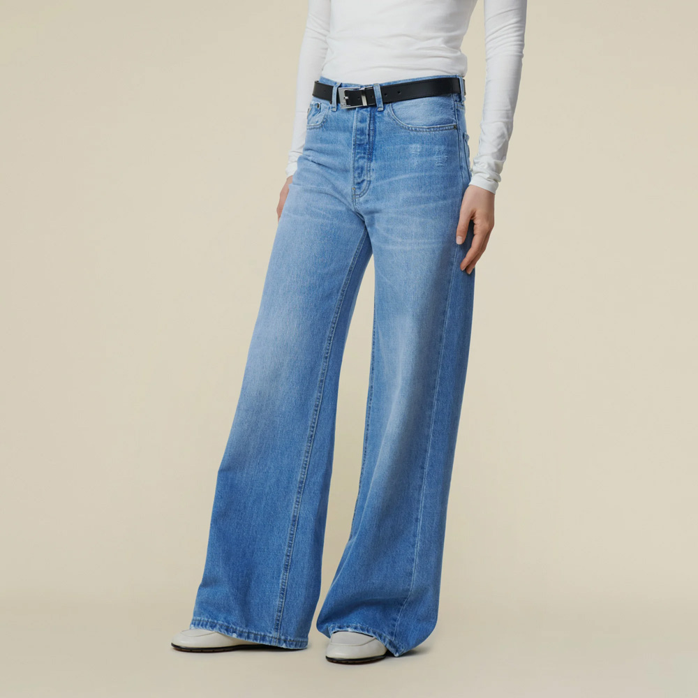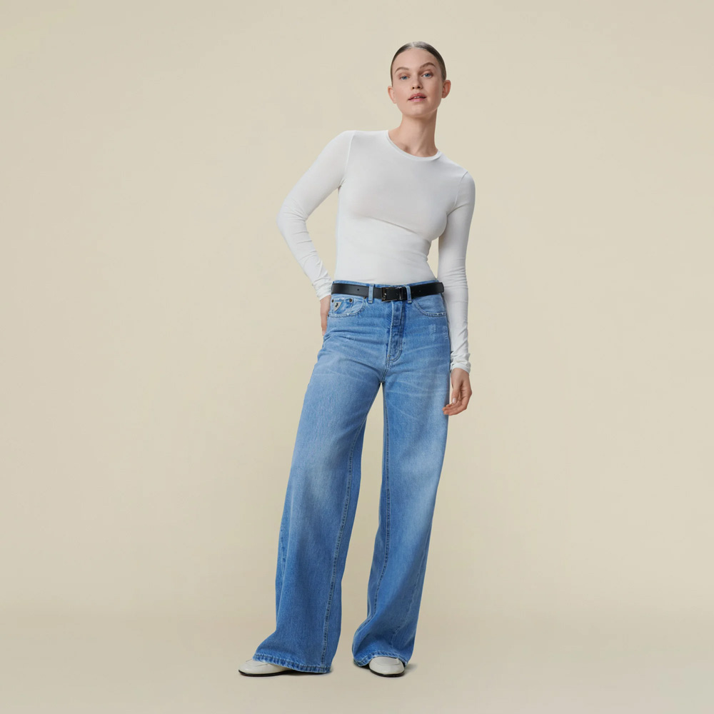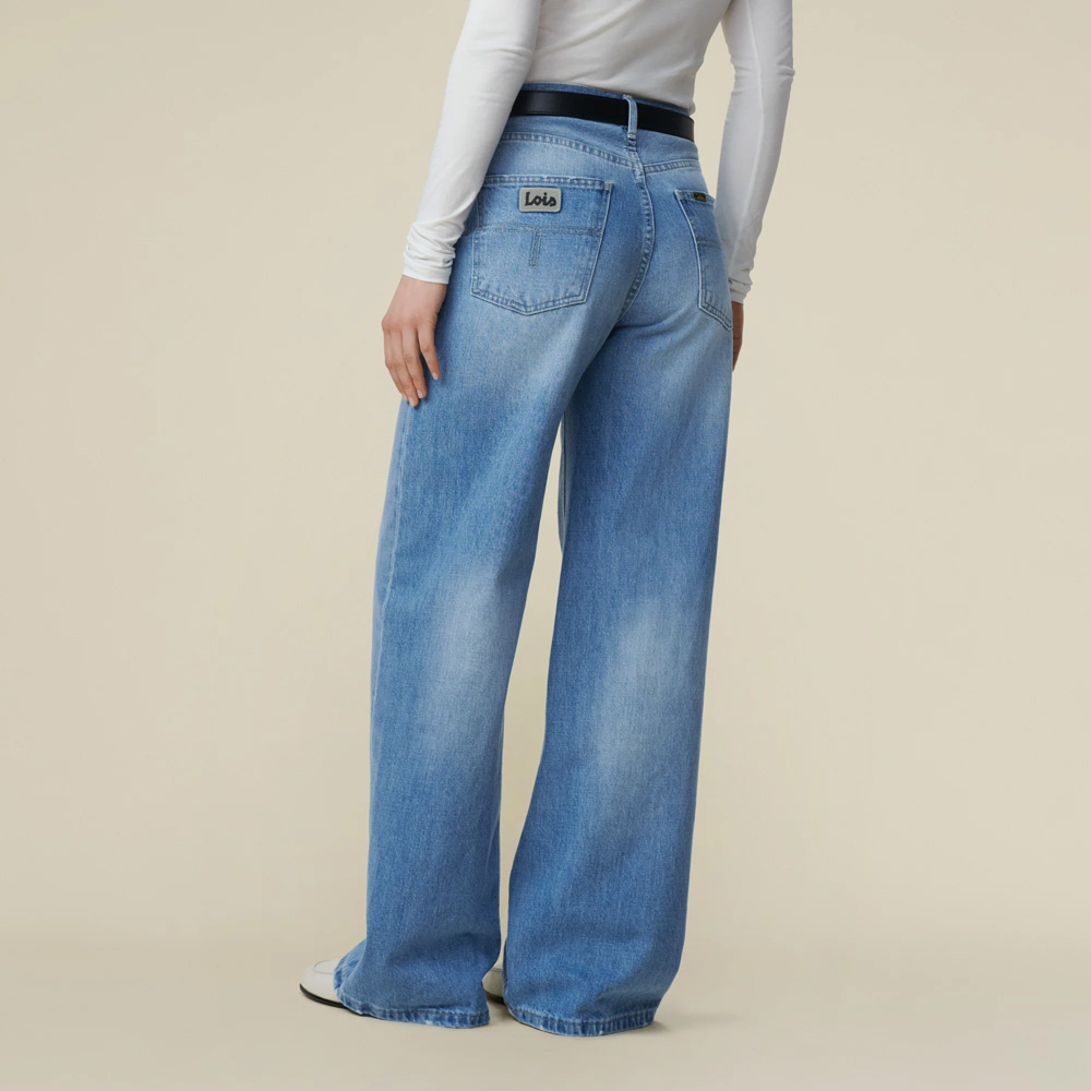 Skater Loose Miller Pale fra Lois er en bukse inspirert av gatestilen på 90-tallet. Den har en løs silhuett og kommer i en steinvasket, lys blå farge med slitte detaljer som understreker street-looken.