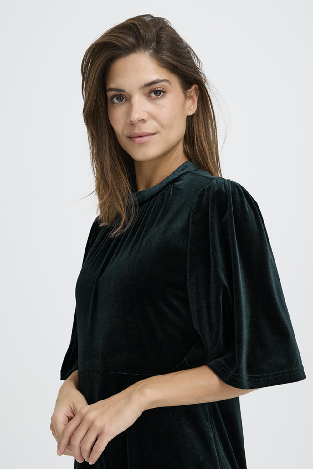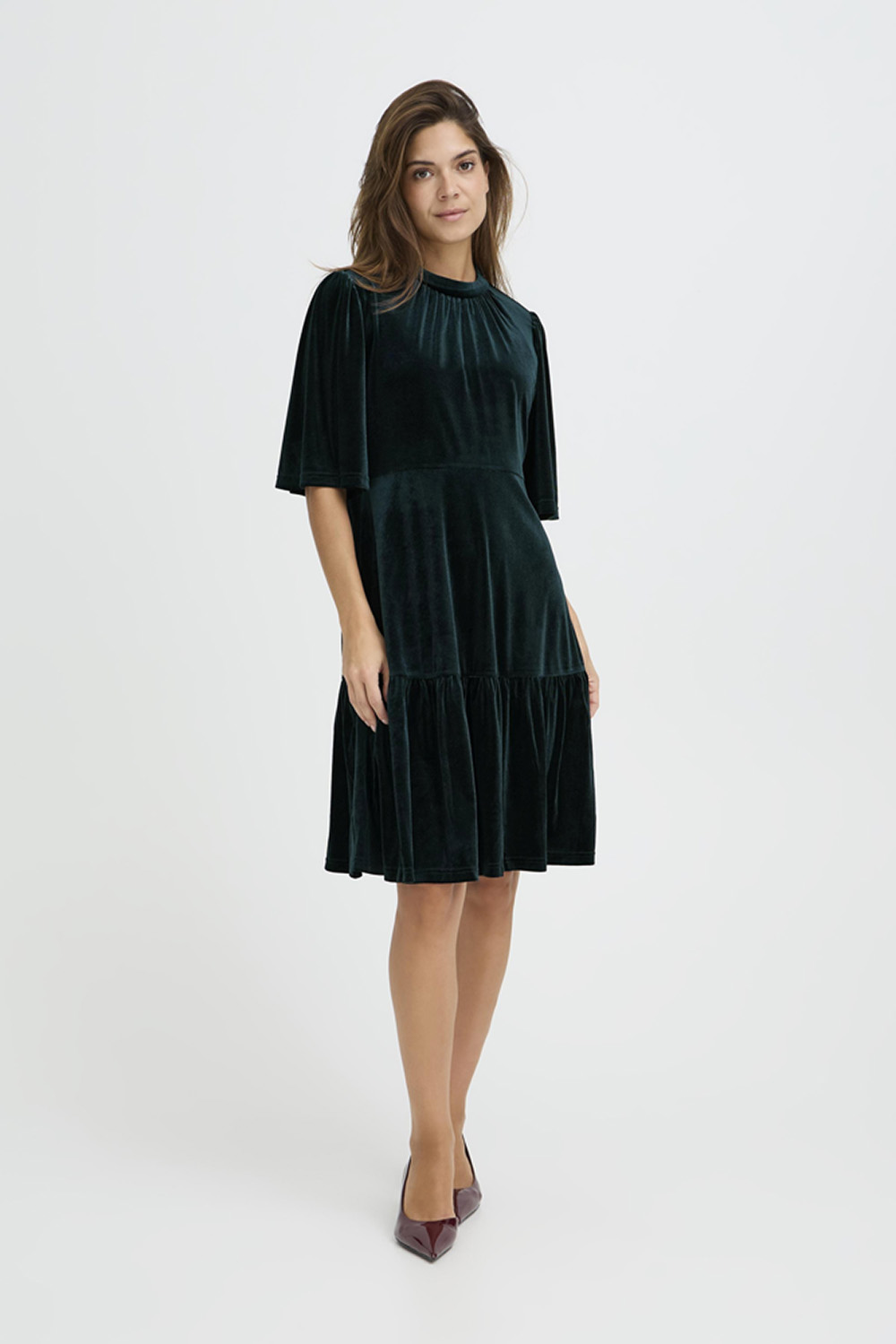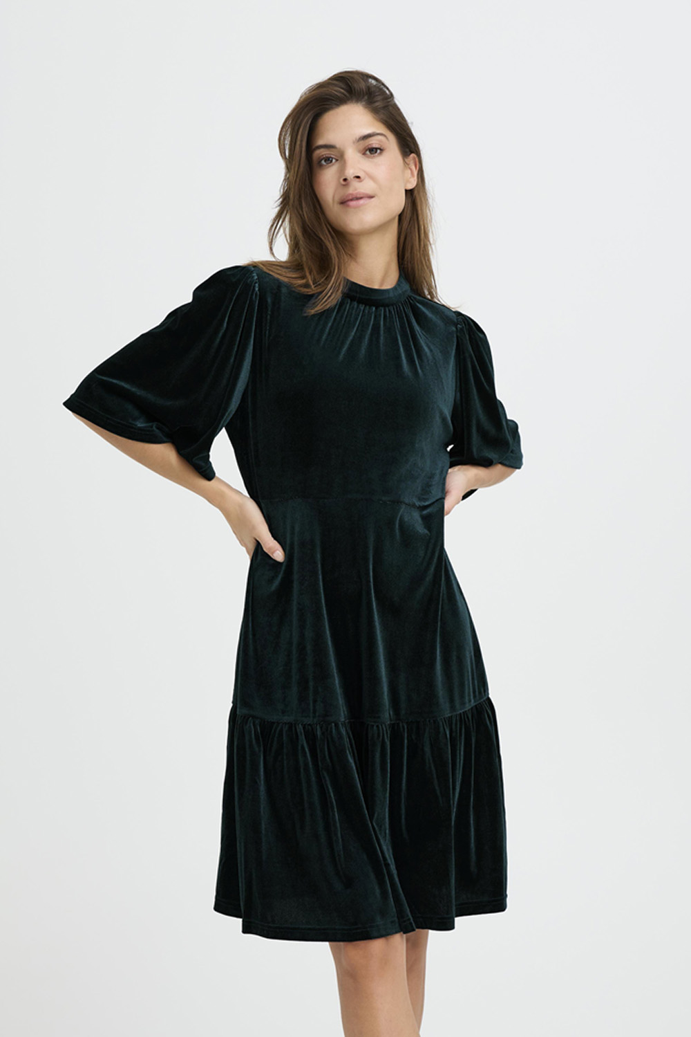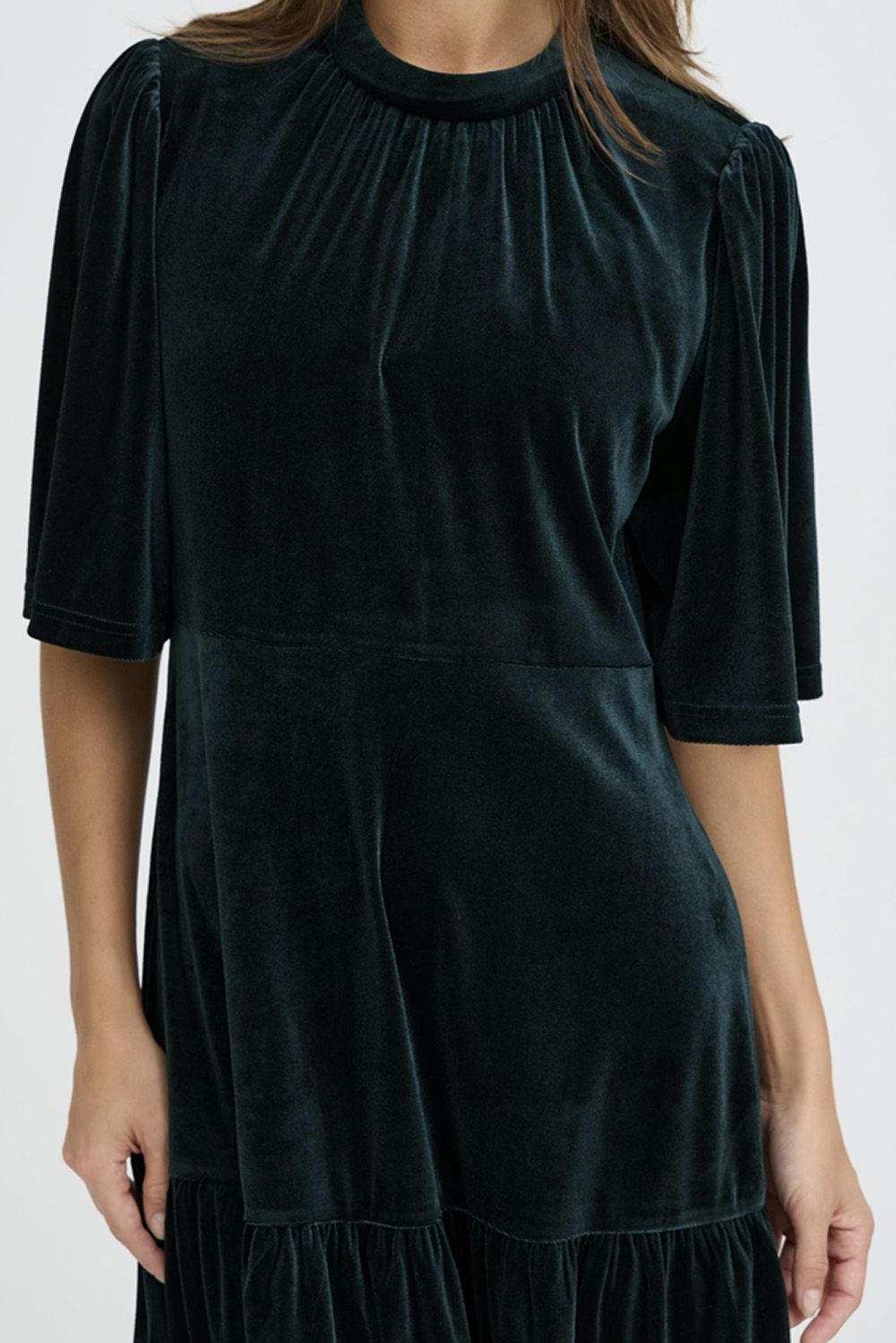 PZ Barbara Ss Dress fra Pulz Jeans. Myk og feminin kjole i deilig velur med rund hals og ermer til albuen. En tidløs modell som føles både elegant og behagelig- perfekt for koselige anledninger eller en avslappet kveld ute.
