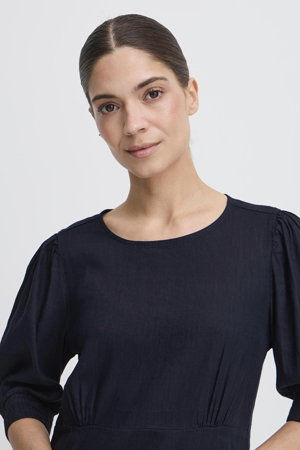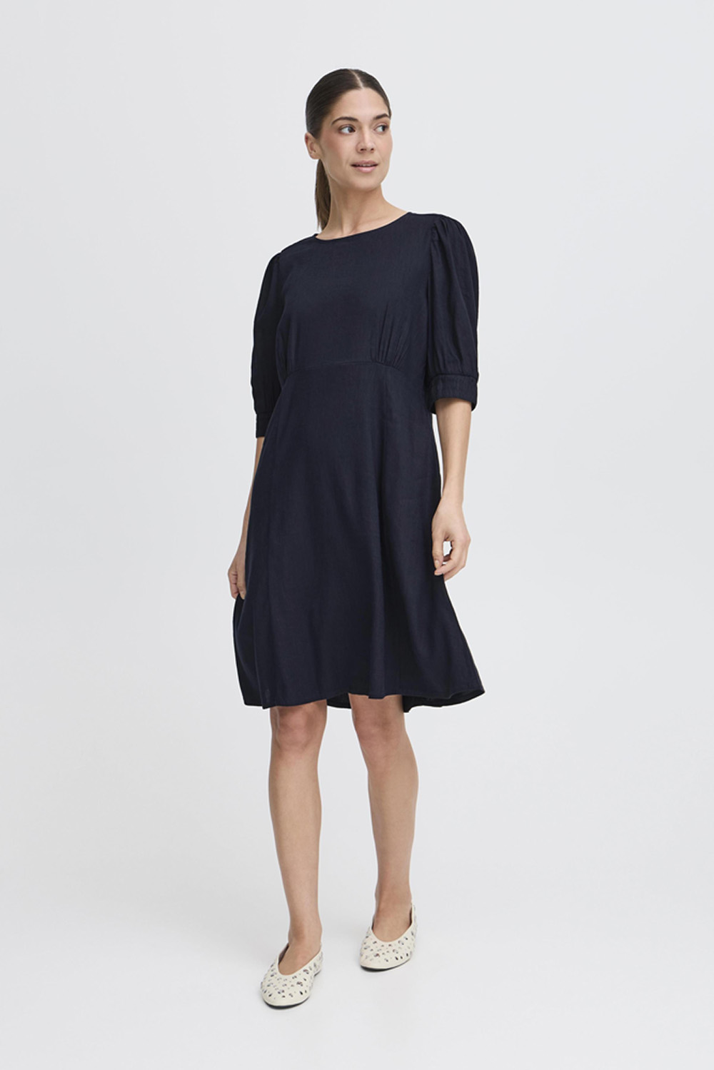 En feminin og lett kjole med et rent og tidløst uttrykk. PZ LUCA SS DRESS fra Pulz Jeans har en kroppsnær overdel som går over i en subtil A-linje, noe som gir en flatterende silhuett. Puffede korte ermer og klassisk rund hals tilfører et mykt og elegant preg, mens knelengden gjør den enkel å style til både hverdag og finere anledninger.