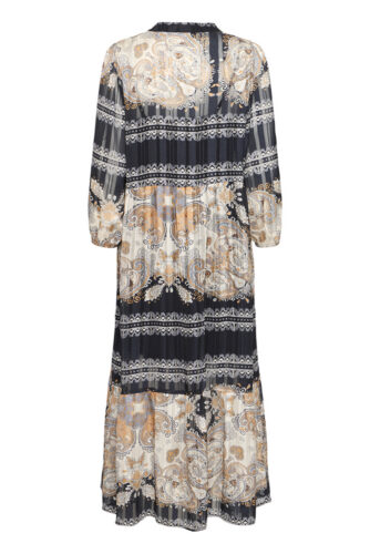 Pz Vanya Dress fra Pulz Jeans. Elegant kjole med nydelig mønster og lett, luftig kvalitet. Avslappet passform gir komfort hele dagen, mens V-halsen og de feminine detaljene skaper et flatterende uttrykk.