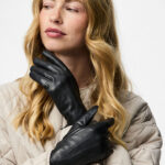 PC Nellie Leather Smart Glove fra Pieces. Tidløse skinnhansker med mykt fôr. Gir både komfort og eleganse- perfekt til alt fra hverdagsjakker til vinterkåpe.