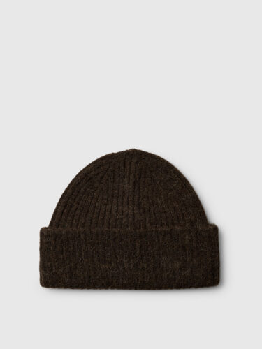 Lulu Wool Blend Knit Beanie fra Selected Femme. Strikket lue i ull med oppbrettet brem og ribbet design.