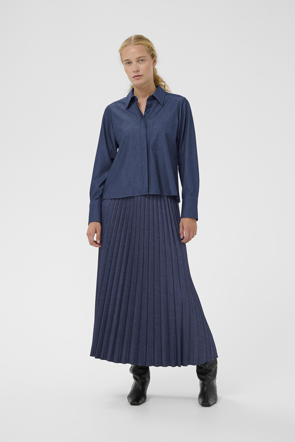 Cherrie Skirt fra In Wear- et elegant maxiskjørt med plissert design og markerte, vakre folder. Den glatte og myke overflaten gir et luksuriøst fall, mens elastisk linning sikrer komfort hele dagen. Tidløs A-silhuett som smigrer til både hverdag og fest.