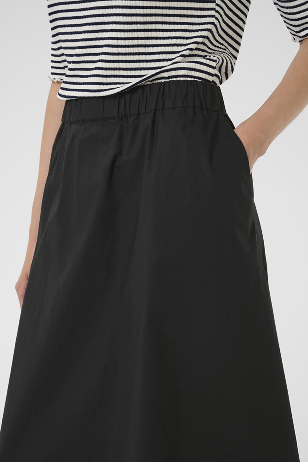 Camille Skirt er et elegant og allsidig skjørt med feminin bevegelse og tidløst uttrykk. Det har en flatterende silhuett med komfortabel midje og vakker fall, perfekt både til hverdags og finere anledninger. Et klassisk plagg som enkelt kan styles med både strikk, bluser og enkle topper.
