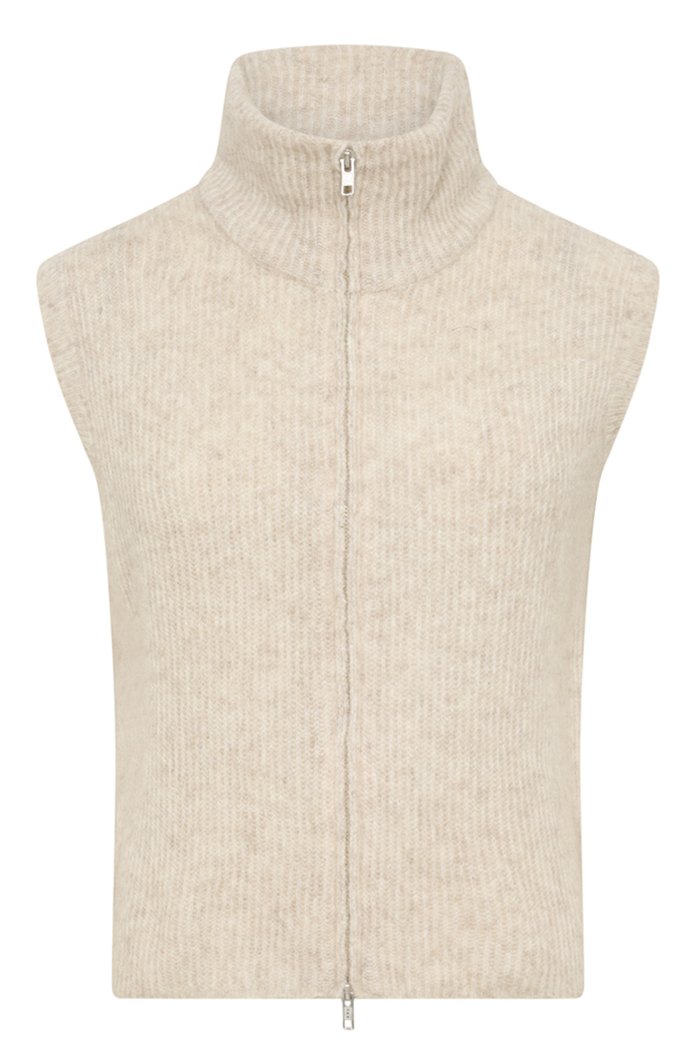 KB Zelda Waistcoat fra Karen by Simonsen er en myk og tidløs vest i varm og behagelig strikkekvalitet. Den avslappede passformen og høy hals gir komfort og et klasisk preg, mens glidelåsen foran gjør den enkel å style over skjorter, bluser eller tynne gensere. Perfekt for kjølige dager.