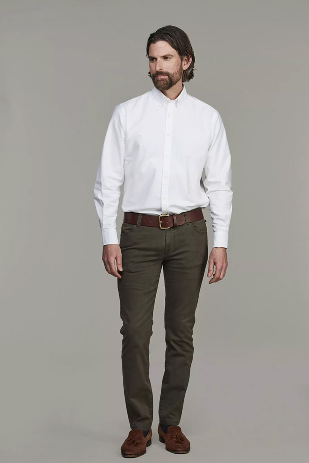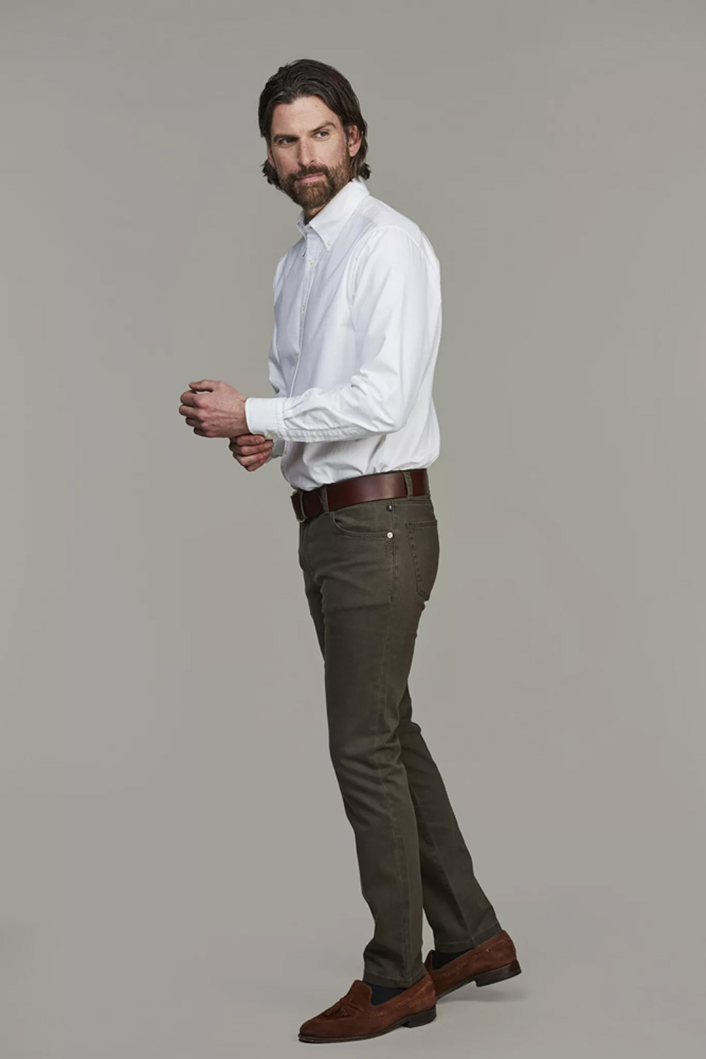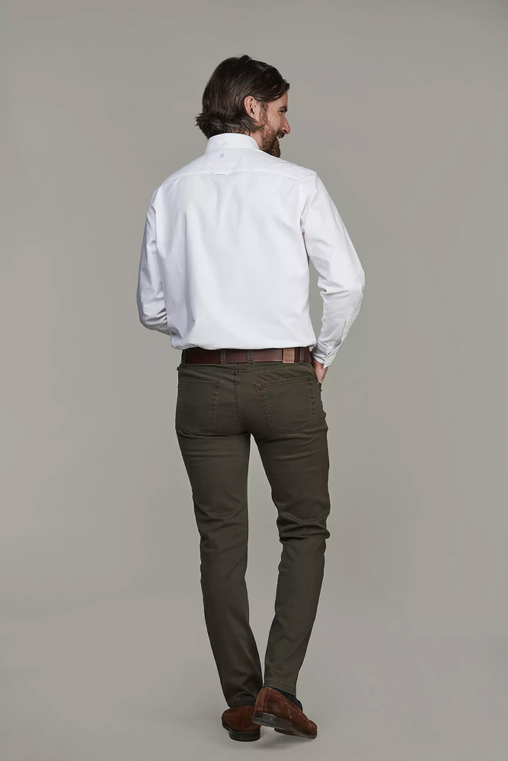 En elegant chinos-inspirert bukse med fem lommer i en myk silk touch-kvalitet som gir et raffinert og behagelig uttrykk. Den har en klassisk passform som sitter godt uten å være trang, og et tidløst snitt som gjør den enkel å style til både skjorte og genser. En allsidig bukse som passer like godt til jobb som fritid.