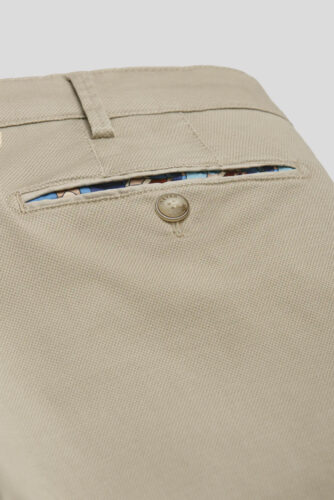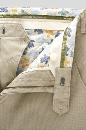 Meyer sommerbukse er en lett bukse i en lys khaki/beige fargetone. En fin struktur i vevingen gir den et eksklusivt utseende.