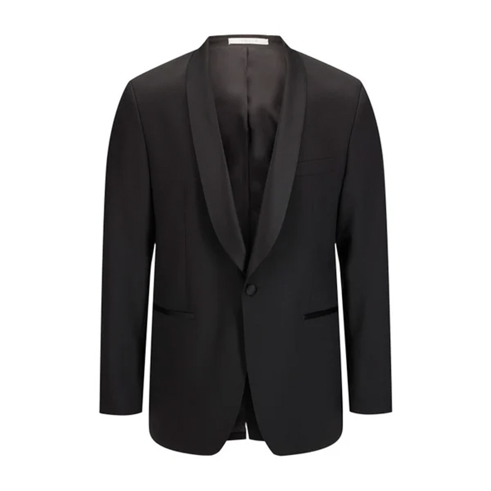En elegant smokingjakke med klassiske sjalslag i sateng og en stilren enknapps lukking. Den tidløse silhuetten gir et sofistikert uttrykk – perfekt til formelle anledninger og fest. Kombiner med matchende smokingbukse for et gjennomført antrekk.
