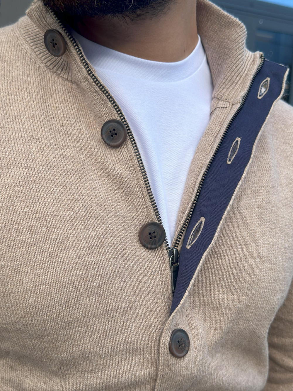 Garritano Jacket fra Giovani er en stilig og tidløs cardigan. Den har en regulær passform, lukkes med glidelås og knapper, og passer fint til både hverdagsbruk og mer formelle anledninger.