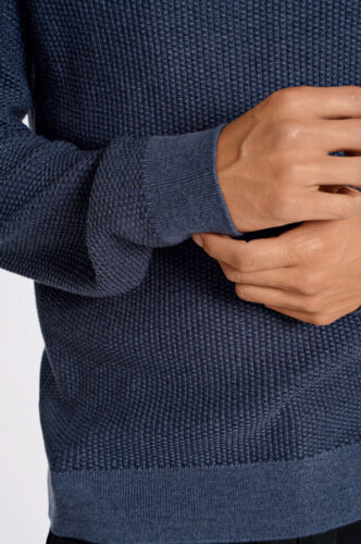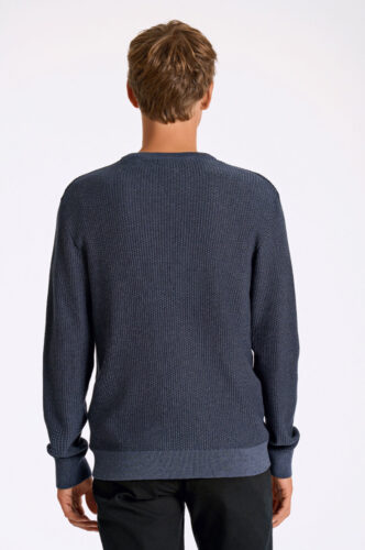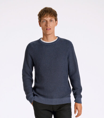 Structure O-Neck Knit fra Lindbergh er en strukturstrikket genser laget av 100% bomull. Den har en avslappet passform, rund hals og ribbestrikkede kanter.