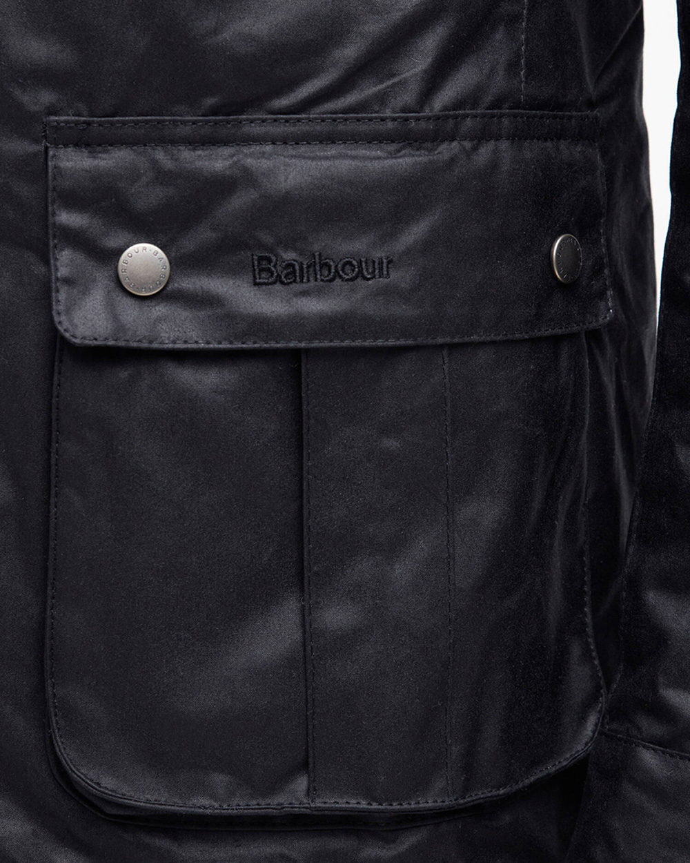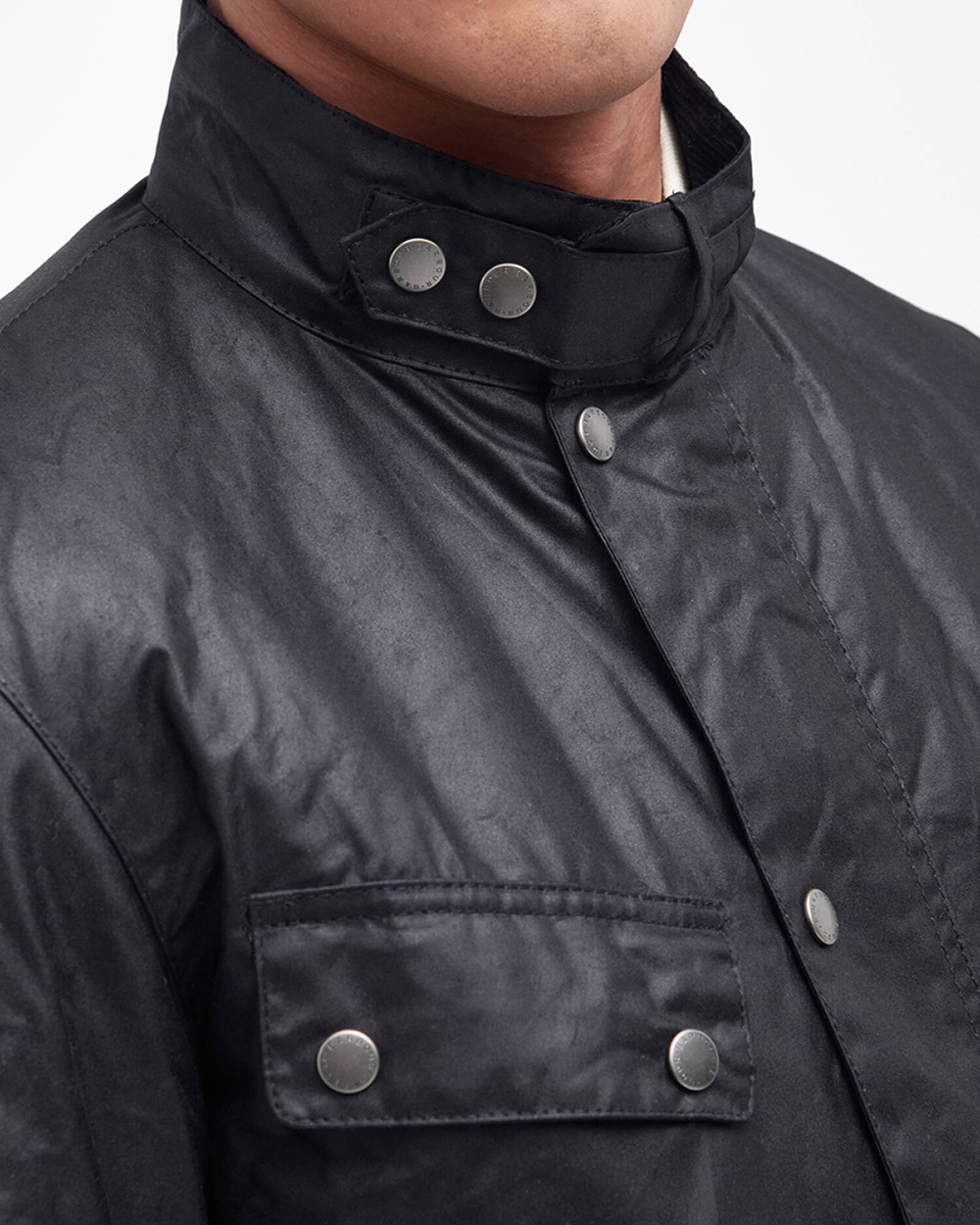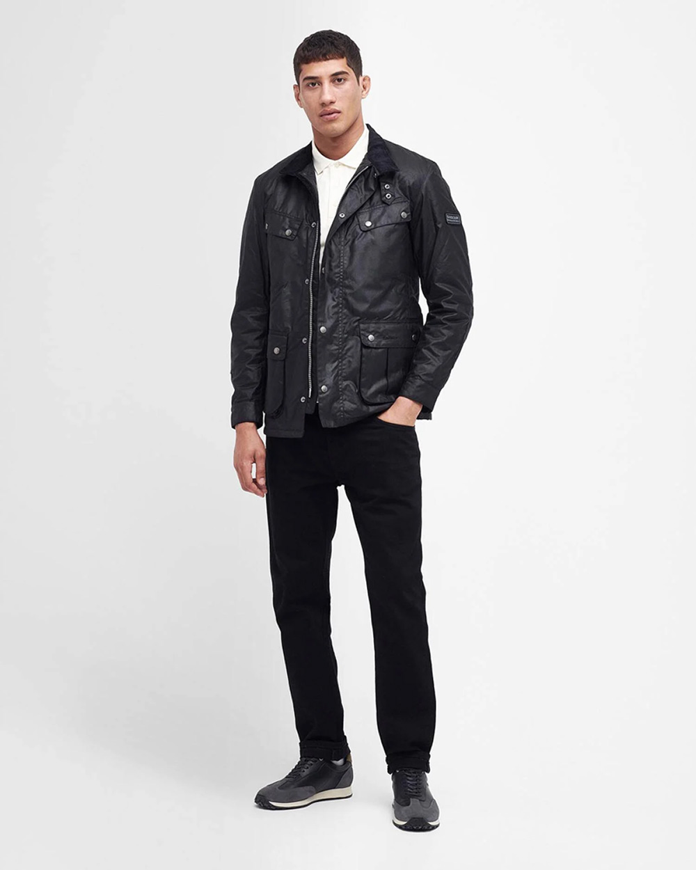 Barbour International Duke Wax Jacket kombinerer den ikoniske Enfield-biker-stilen med robust vinterisolasjon. Laget av Thornproof-vokset bomull, som gir en robust overflate som kan tåle vær og vind. Det tøffe designet på jakken er tro mot biker-estetikken med fire ytterlommer og lapper på underarmene.