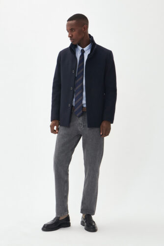 Kort ullfrakk fra Matíníque med smal, moderne passform. Harvey Short Jacket har høy ståkrage, skjult knappelukking og en vattert innsats med glidelås som gir ekstra varme og et gjennomført uttrykk. En elegant jakke som kombinerer klassisk stil med praktiske detaljer.