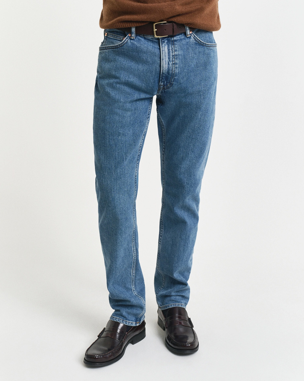 Reg Clean Jeans fra GANT- en tidløs jeans med normal passform og mellomhøyt liv. Den er noe smalere under kneet og har komfortabel stretch som gjør den behagelig hele dagen. Klassiske detaljer som fem lommer, glidelåsgylf, logoknapper og GANT-skinnmerke på linningen fullfører uttrykket.