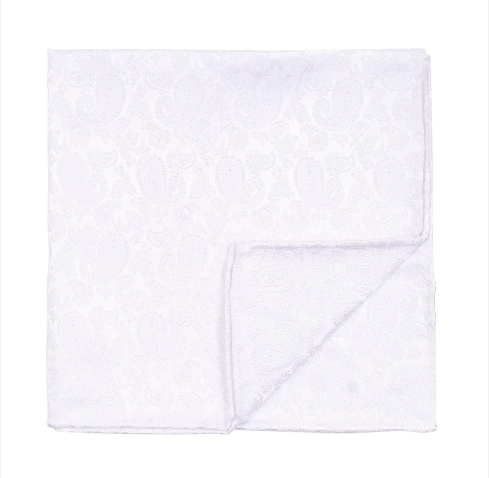 Elegant hvitt lommetørkle i 100% silke med subtilt mønster. Perfekt til å løfte antrekket med et tidløst og sofistikert uttrykk.
