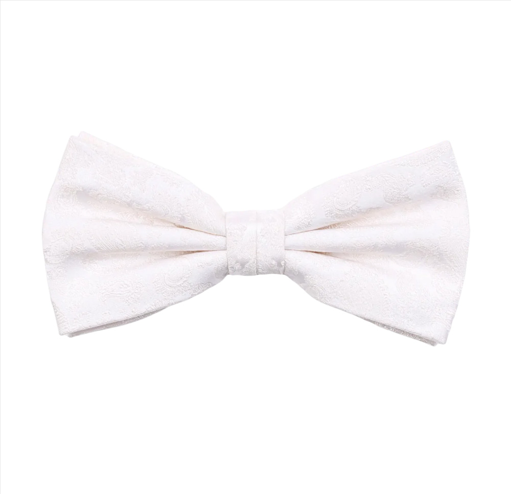 Elegant off-white sløyfe i 100% silke med diskret mønster. Perfekt for et klassisk og stilfullt uttrykk.
