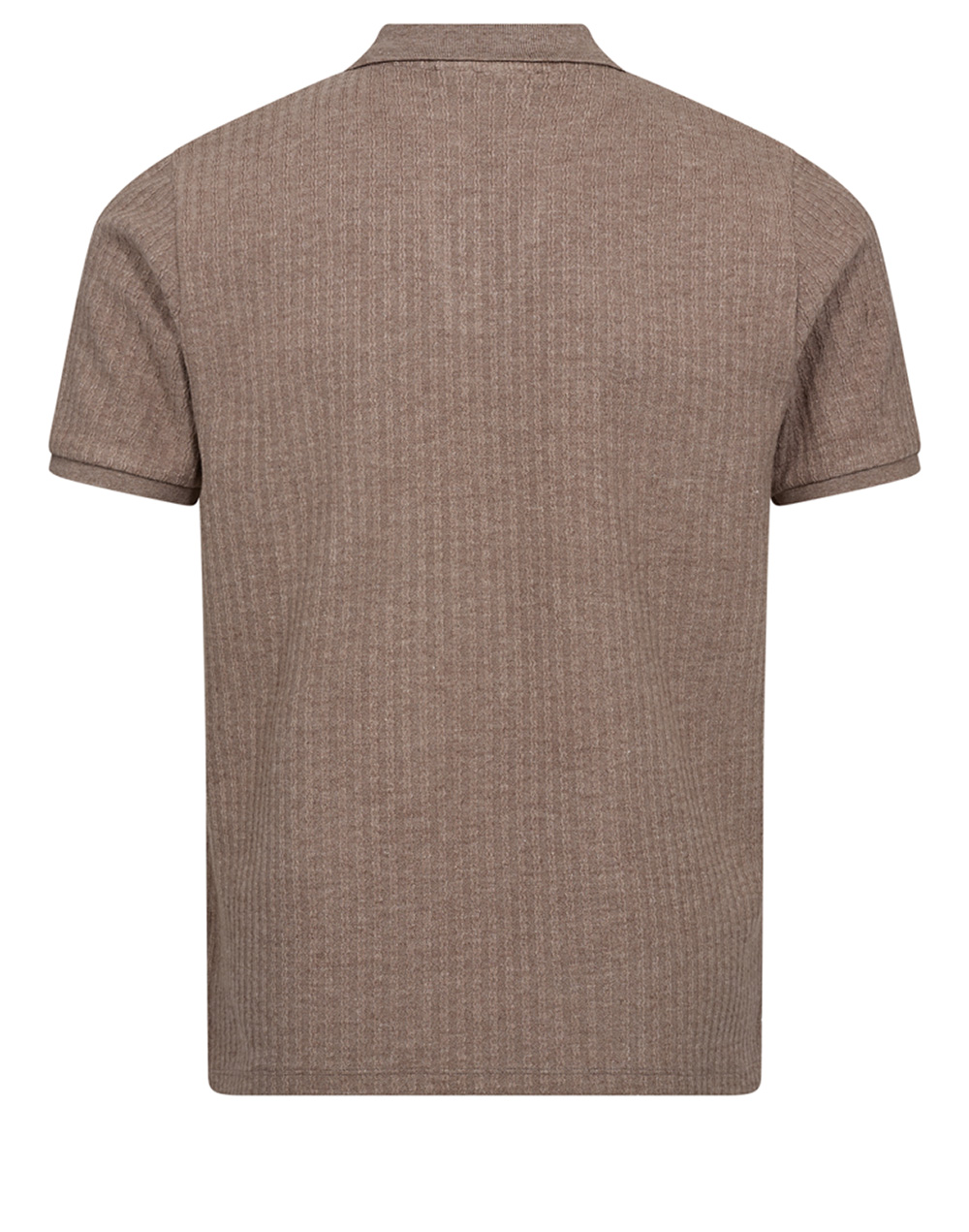 Stilren t-skjorte fra Bruun & Stengade i strukturert, ribbestrikket kvalitet med diskret mønster. Designet med klassisk krage og V-åpning som gir et elegant, men avslappet uttrykk. En sofistikert hverdagsfavoritt som fungerer perfekt til mer pyntede antrekk.