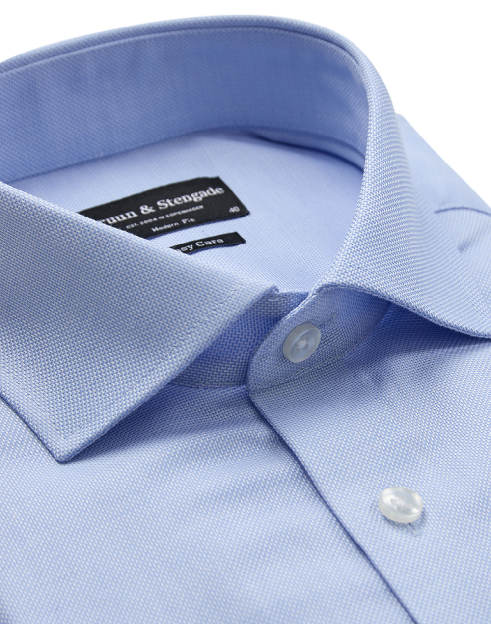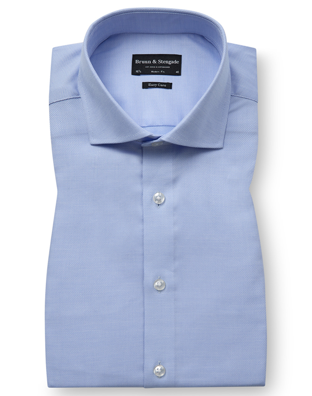 Stilren skjorte fra Bruun & Stengade med modern fit – en lett innsvinget passform som gir et velkledd uttrykk uten å gå på bekostning av komfort. Easy care-kvalitet gjør den enkel å holde pen.
