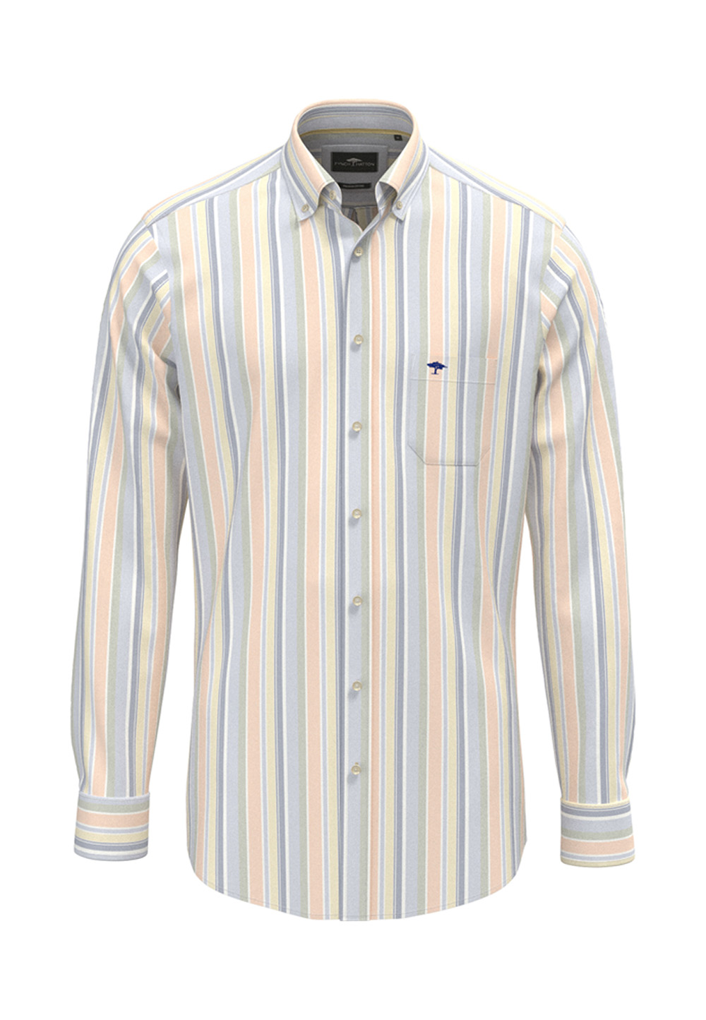 En frisk og tidløs oxfordskjorte i 100 % myk bomull. Button-down-kragen og brystlommen med brodert logo gir et klassisk preg, mens stripene i vårlige farger tilfører liv og eleganse. Perfekt for både hverdag og sommerlige anledninger.