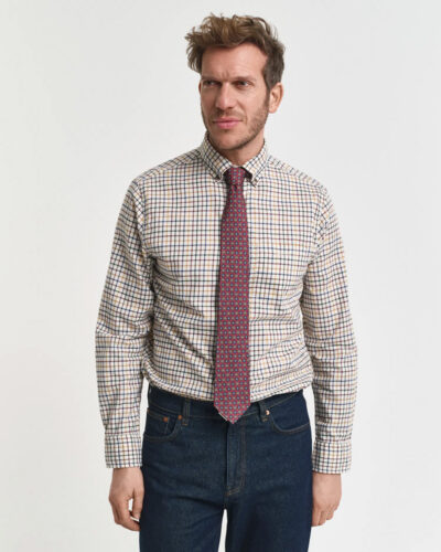 Reg Twill Check Shirt fra GANT er en skjorte i twillstoff med heldekkende tattersall-rutete mønster. Skjorten har en regulær passform, button-down krage, justerbare mansjetter og brodert GANT-logo på brystet.