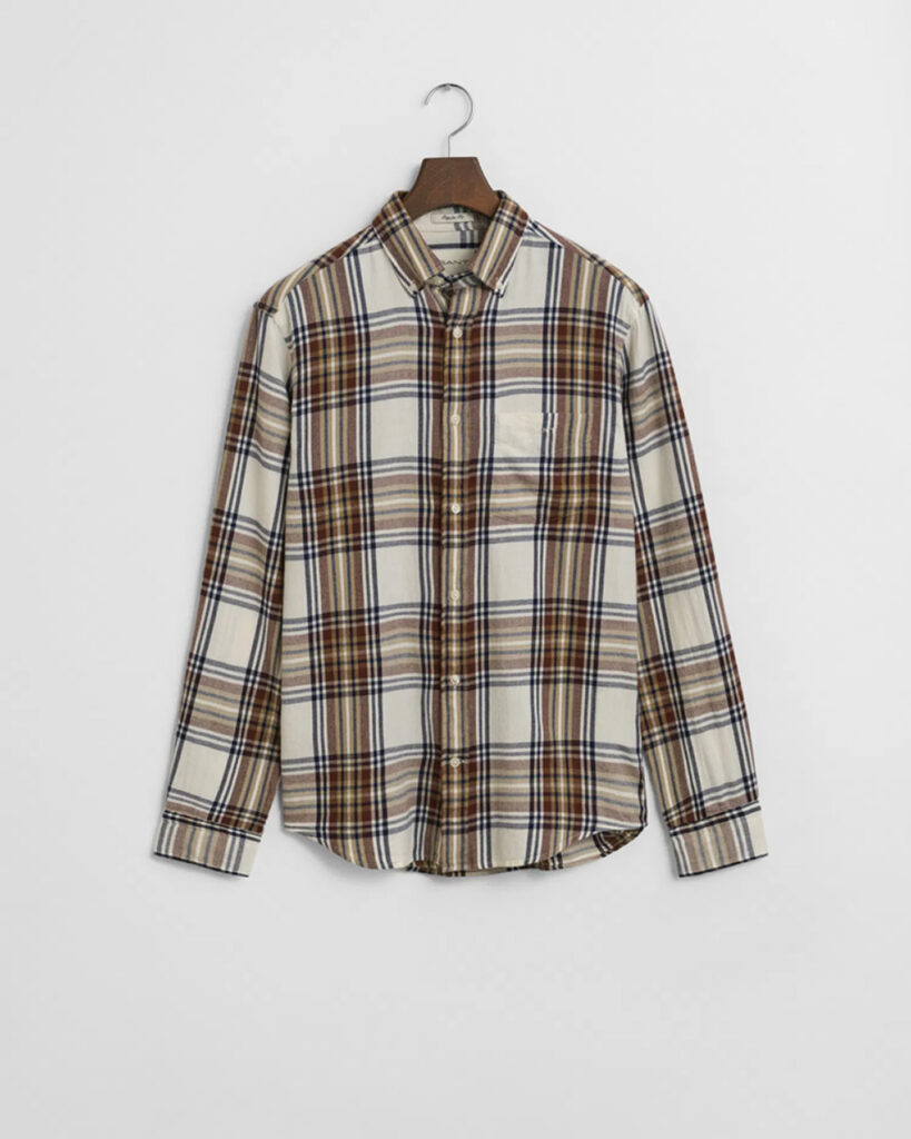 Reg Windblown Flannel Check Shirt fra GANT. En livlig rutet skjorte i lett flanell som varer hele høsten. Komfortabel regulær passform, mykt stoff og nøye detaljer- ideell enten du vil ha lag-på-lag eller bruke den alene. Legg til et snev av rustikk eleganse i garderoben din.