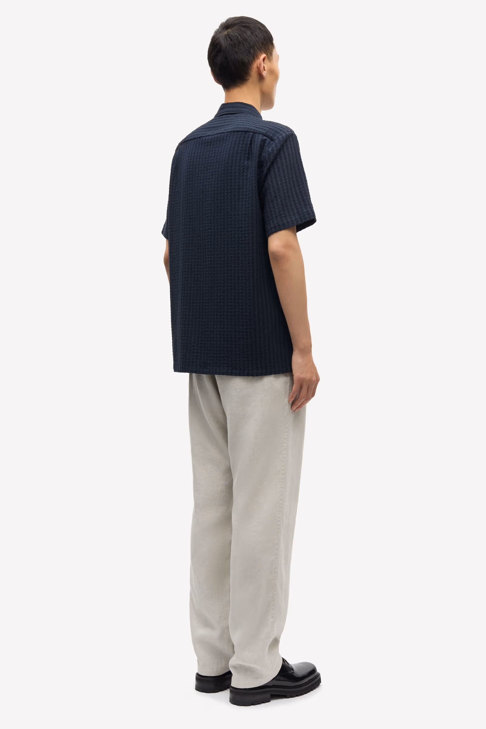 Mønstret kortermet skjorte med et rent og moderne uttrykk. Den har en komfortabel, regular passform og klassisk knappelukking i front. Laget i Portugal av elastisk bomull som gir god bevegelighet og en behagelig følelse. En stilren skjorte som enkelt løfter både hverdags- og sommerantrekk.