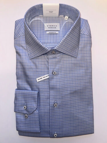 Skjorte med smårutete mønster fra Eterna. Skjorten har en modern fit, Kent-krage og lange ermer.