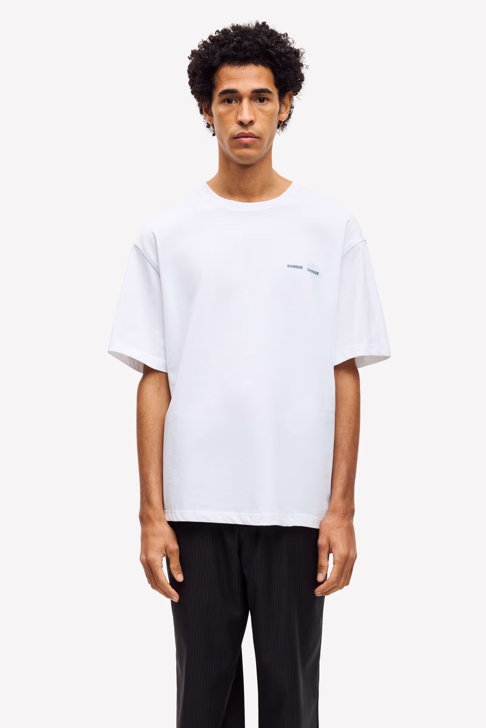 Saflorian T-Shirt fra Samsøe Samsøe leverer en avslappet streetstyle med sin loose fit og lave skuldre. Det grafiske backprintet gir en kul edge til den rene fronten, mens den myke, økologiske bomullen sørger for maksimal komfort. En statement-basic som skiller seg ut uten å ta over.