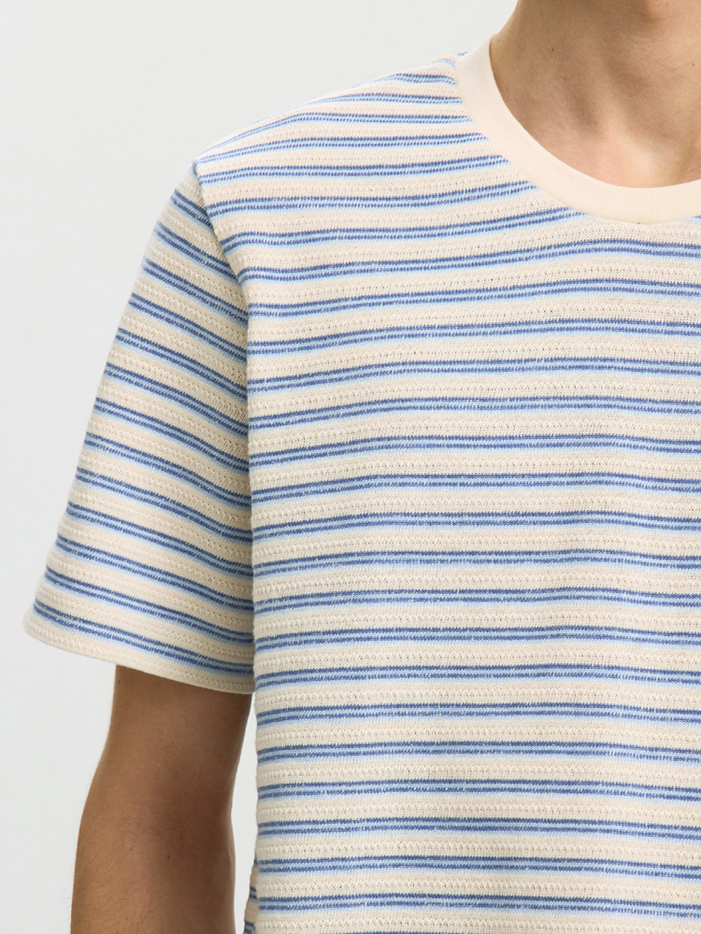 En tidløs og allsidig T-skjorte med et klassisk uttrykk. SLHKEVIN STRIPE TEE fra SELECTED HOMME har rund hals og korte ermer, og gir en komfortabel og stilren look som passer perfekt til hverdagsbruk. Det stripete designet tilfører et friskt og moderne preg til en ellers enkel garderobefavoritt.